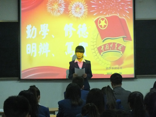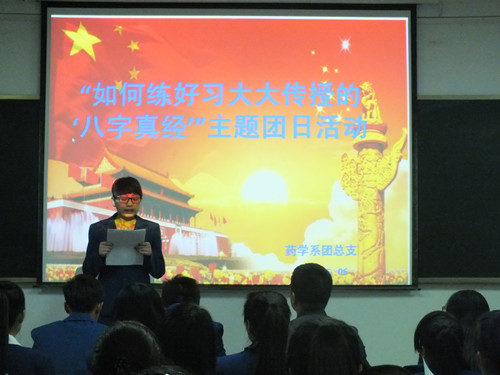 5月6日晚,药学系组织团学干部和学生代表,在博学楼614室开展了学习习总书记传授的“八字真经”主题团日活动。