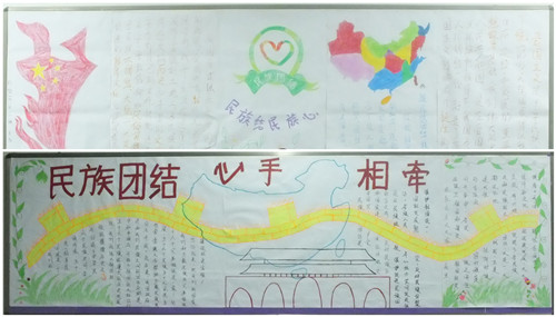 此次黑板报评比活动,锻炼了学生们的动手设计创作能力,同时使学生充分认识到巩固和发展平等、团结、互助、和谐的民族关系的重要性,更增强了青年学生的民族凝聚力和向心力。