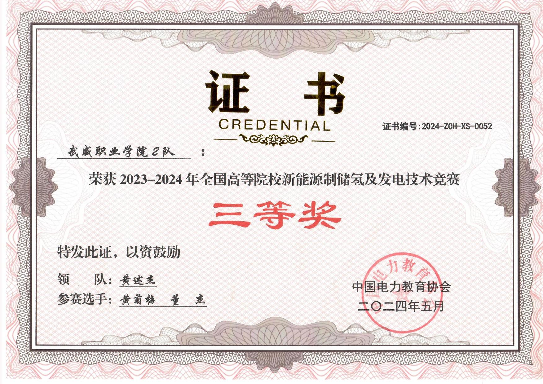 近日,在重庆电力高等专科学校举行的全国首届高等学校新能源制储氢及发电技术竞赛中,中科低碳新能源技术学院教师王续峰和学生王智组成的参赛1队荣获全国二等奖,教师黄菊梅和学生董杰组成参赛2队荣获全国三等奖。