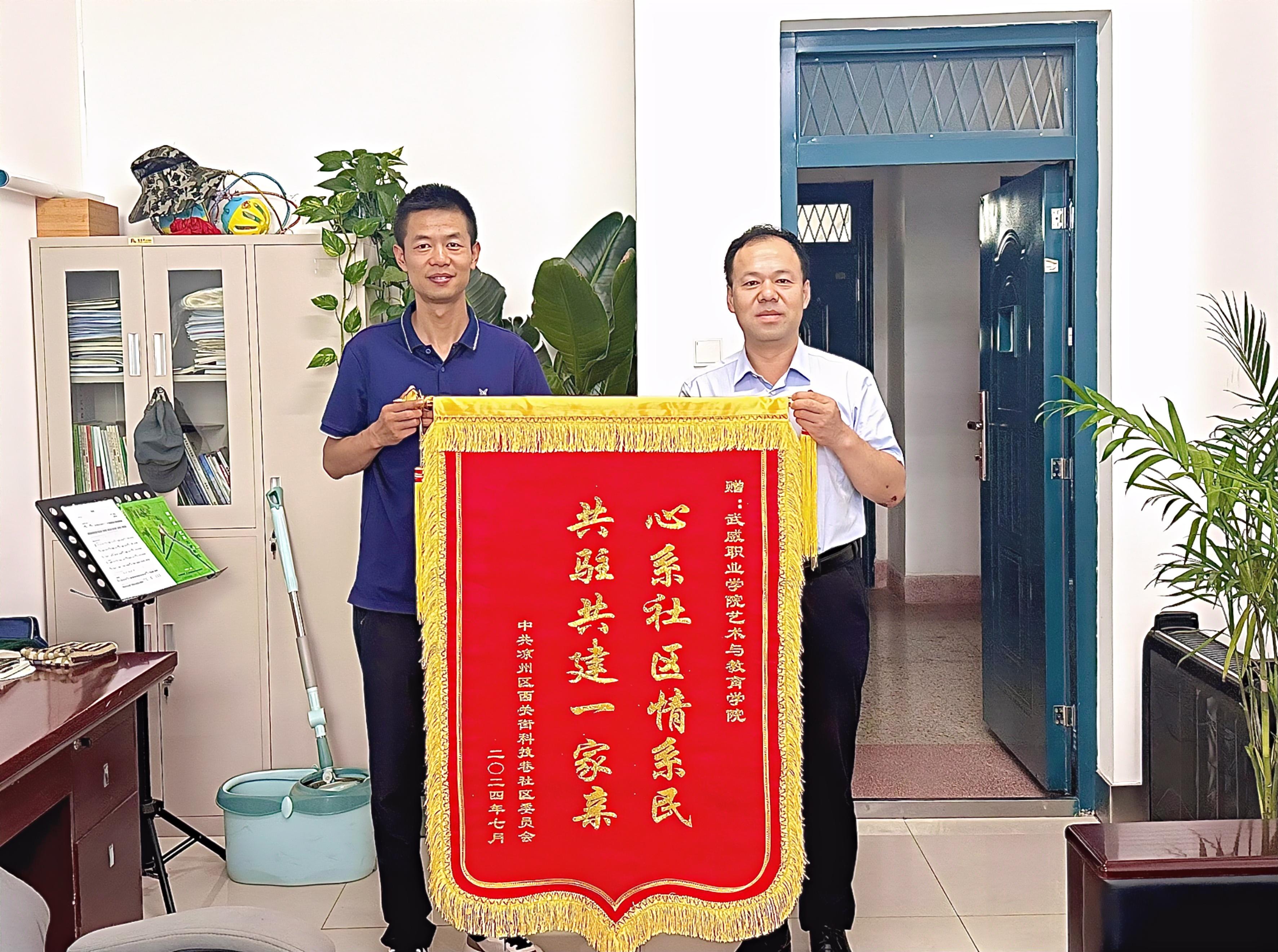 一份荣誉,一份信任,一份鼓励。此次赠旗是对我院在西关科技巷社区开展社会实践活动成果的充分肯定,有助于进一步调动学生参与社会实践活动的积极性,教育引导学生在社会课堂中“受教育、展才干、作贡献”。下一步,我院将深入推进学生志愿服务活动,为基层社会治理和文明武威高质量发展添砖加瓦!