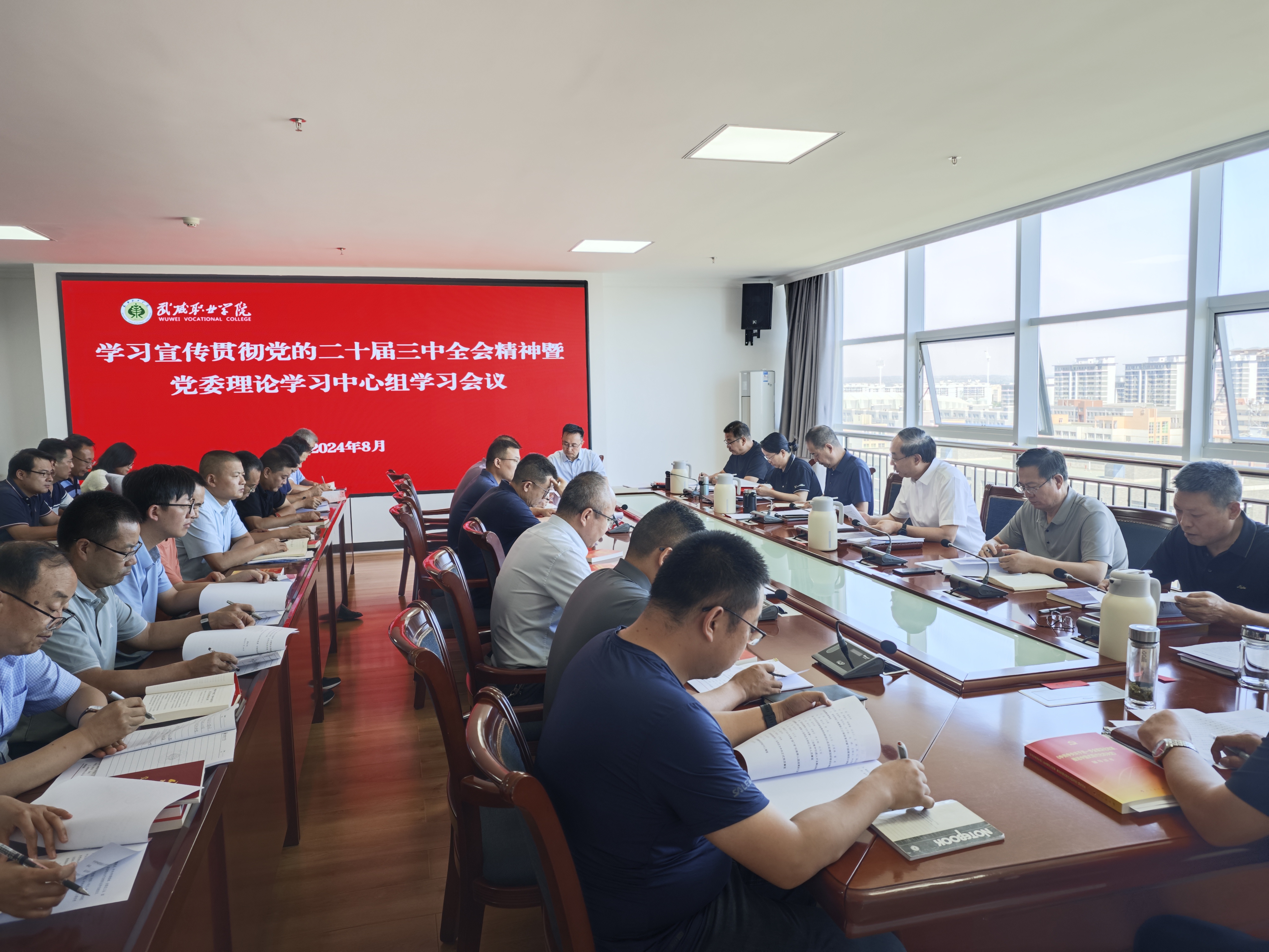 8月12日上午,学校召开学习宣传贯彻党的二十届三中全会精神暨党委理论学习中心组学习会议。学校党委领导班子成员,各部门、二级学院主要负责人,各党总支与直属党支部书记参加会议。党委书记王宏主持会议并讲话。