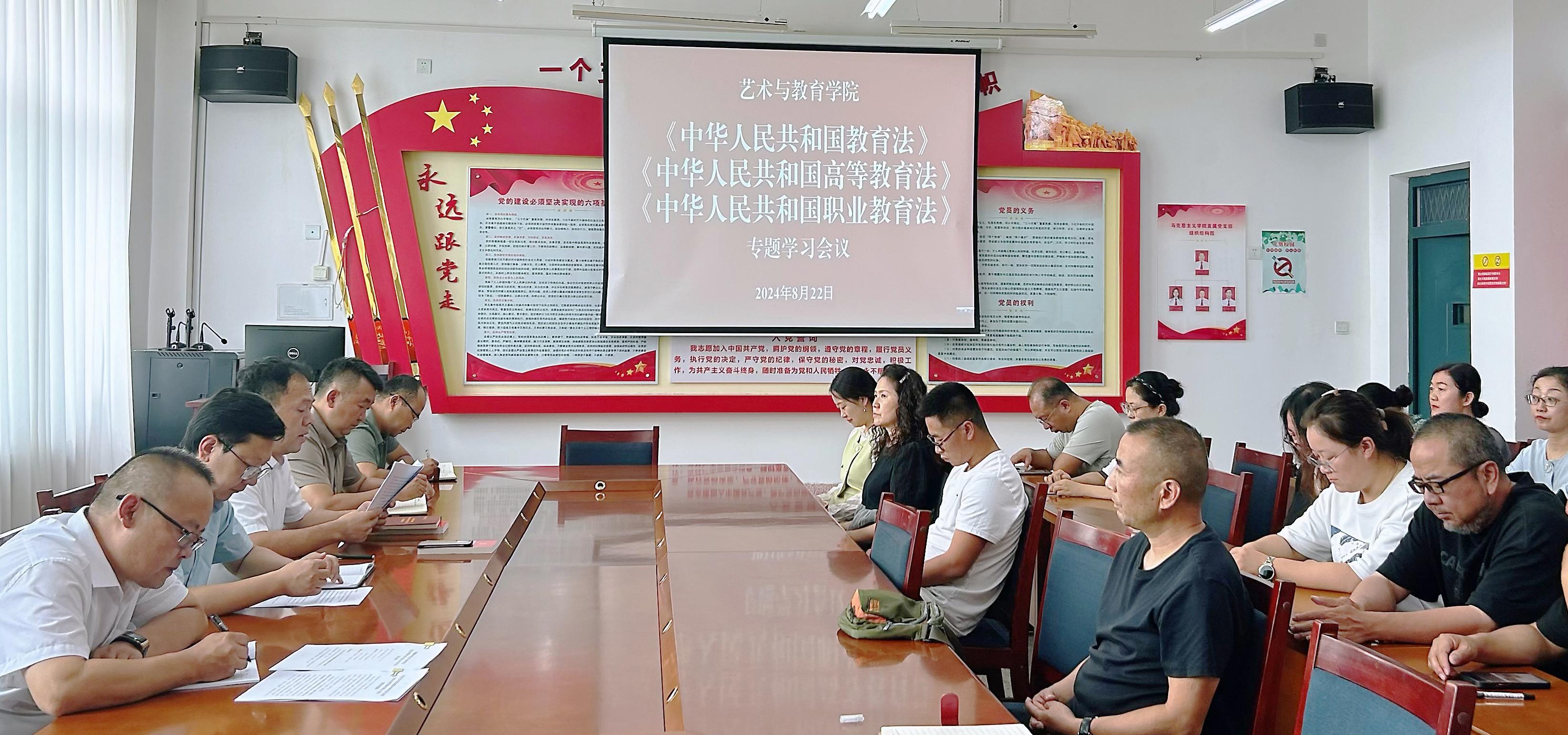为进一步提高教师的法律法规意识,加强教师的师德师风建设,转变观念、解放思想,树立现代职业教育观念,扎实推动教育教学工作高质量发展,8月22日下午,艺术与教育学院组织全体教职工专题学习《中华人民共和国教育法》《中华人民共和国高等教育法》《中华人民共和国职业教育法》等教育相关法律法规及政策文件。会议由党总支书记王政主持。