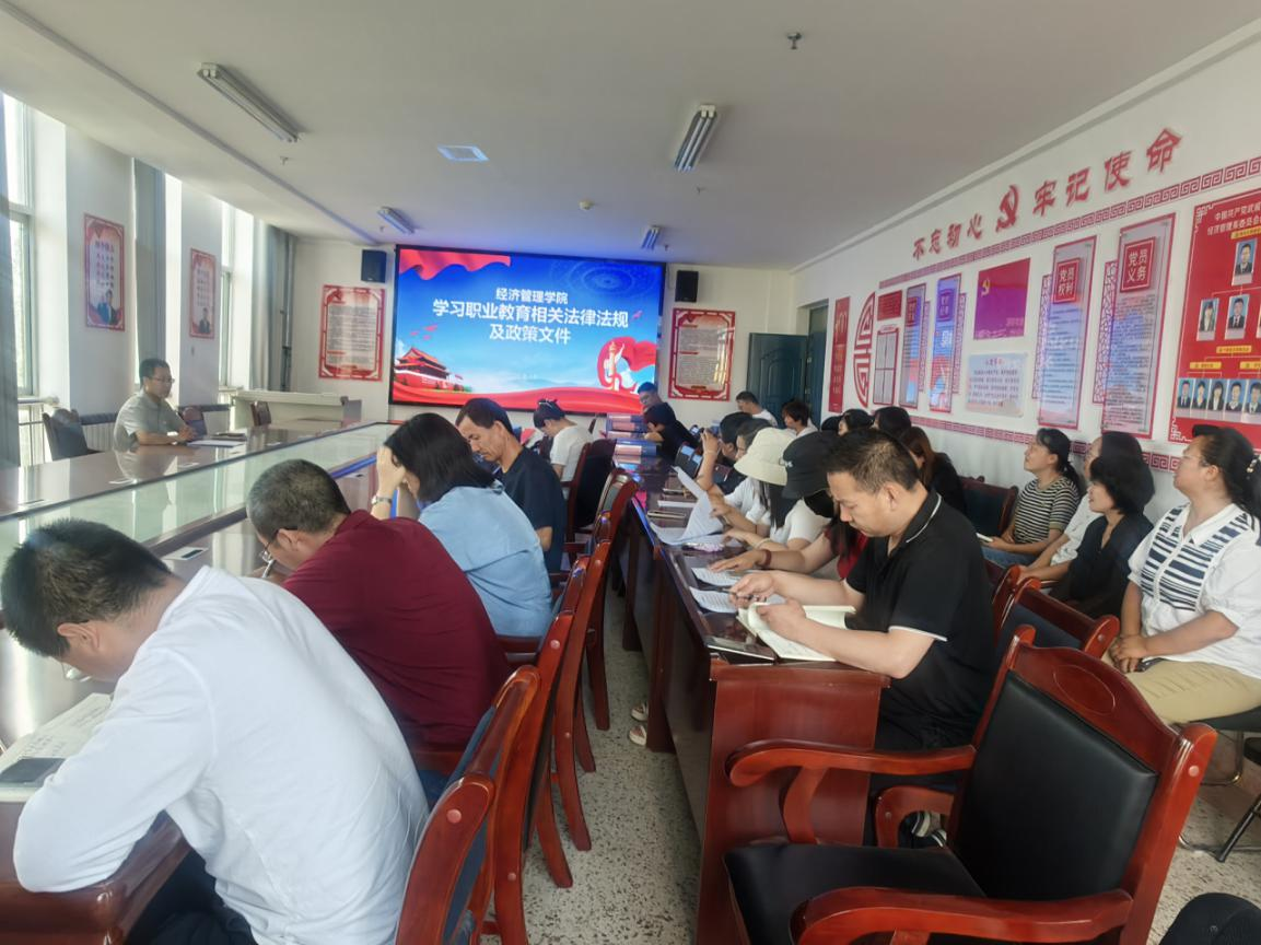 为了进一步了解职业教育法律法规,规范教育教学活动,8月17日至22日,经济管理学院按照学校安排部署召开职业教育相关法律法规及政策文件大学习大讨论活动。全体教职工深入学习了《中华人民共和国教育法》《中华人民共和国高等教育法》《中华人民共和国职业教育法》等职业教育相关法律法规及政策文件,并开展了研讨交流。