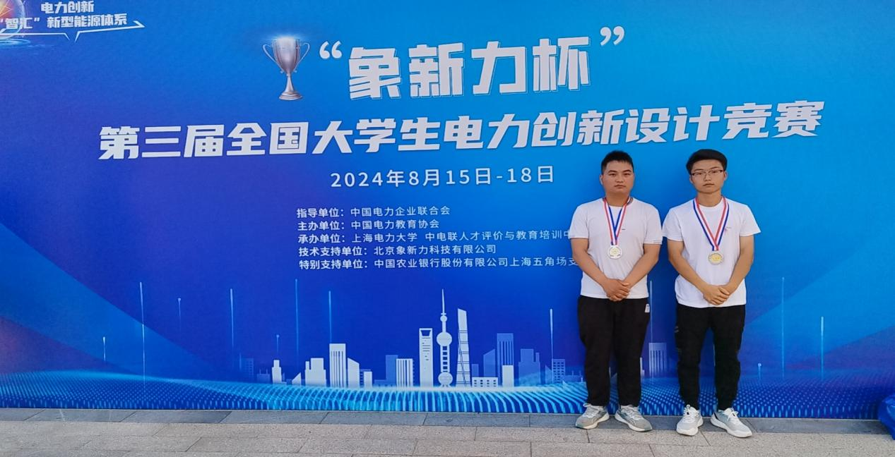8月15-18日,“象新力杯”第三届全国大学生电力创新设计竞赛总决赛在上海电力大学(临港校区)圆满举行。来自全国114所高校的289支团队共计1500余人共同参与,经过线上线下,汇聚智慧、碰撞创意、交流成果、比拼才能,我校工程技术学院参赛的2名同学获决赛二等奖。