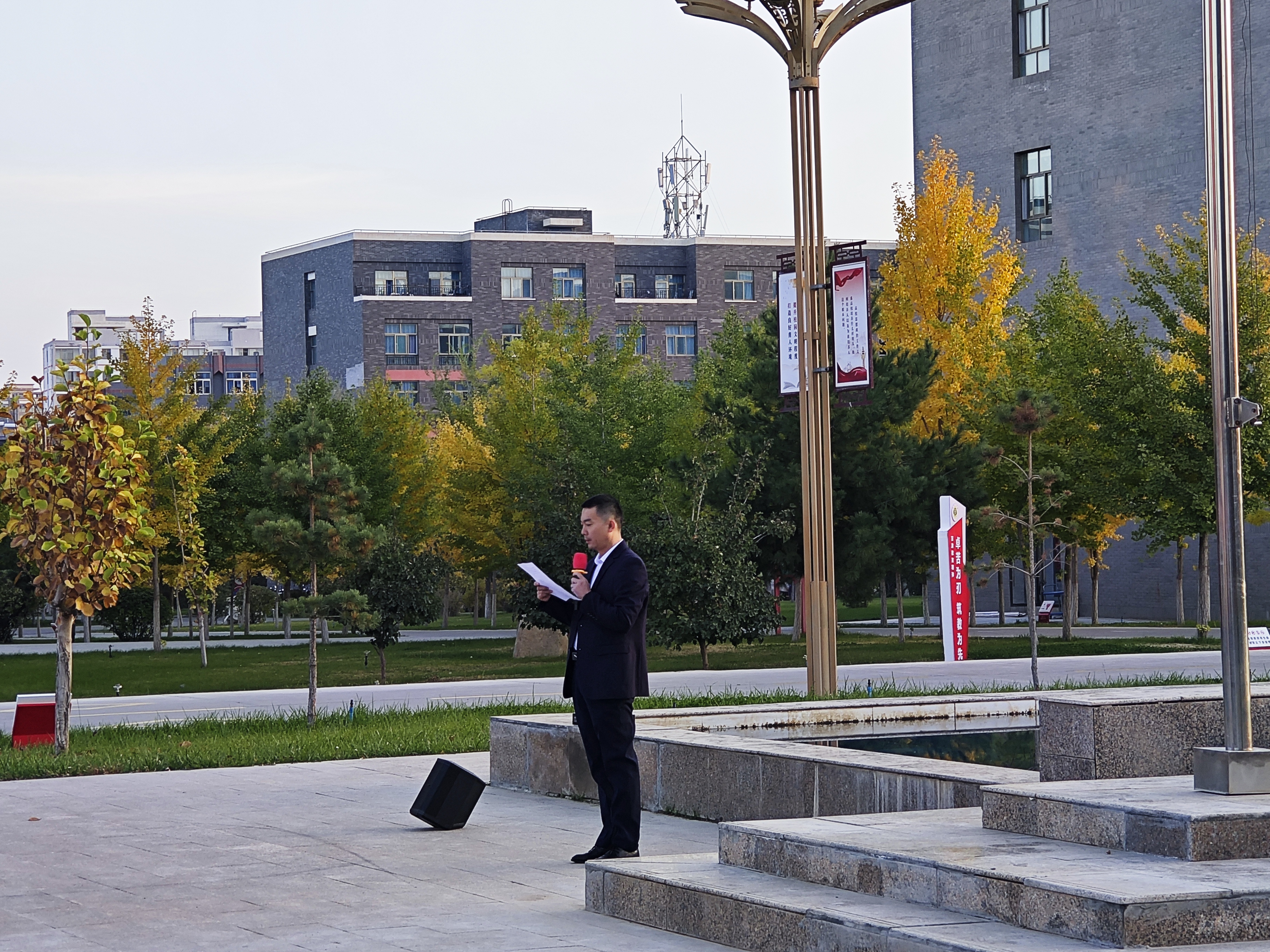 10月14日,信息技术学院在图书馆广场举行升国旗仪式。学院党总支书记史子新及全体师生参加。