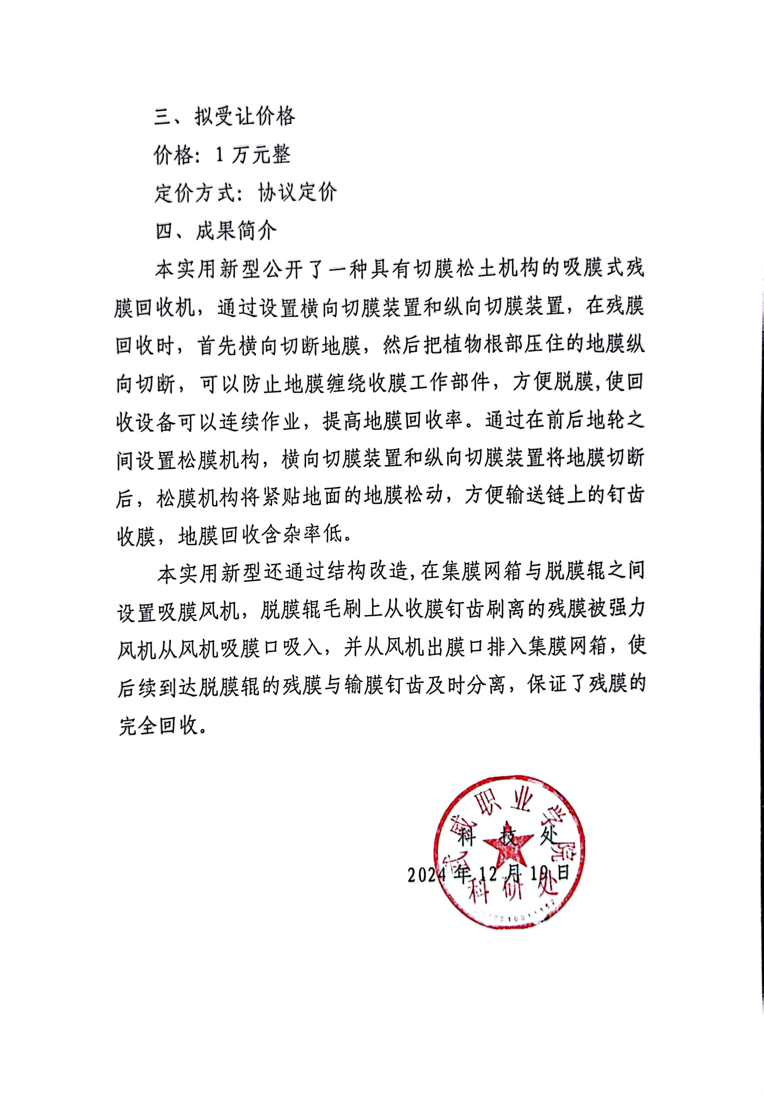关于拟转化科技成果信息的公示