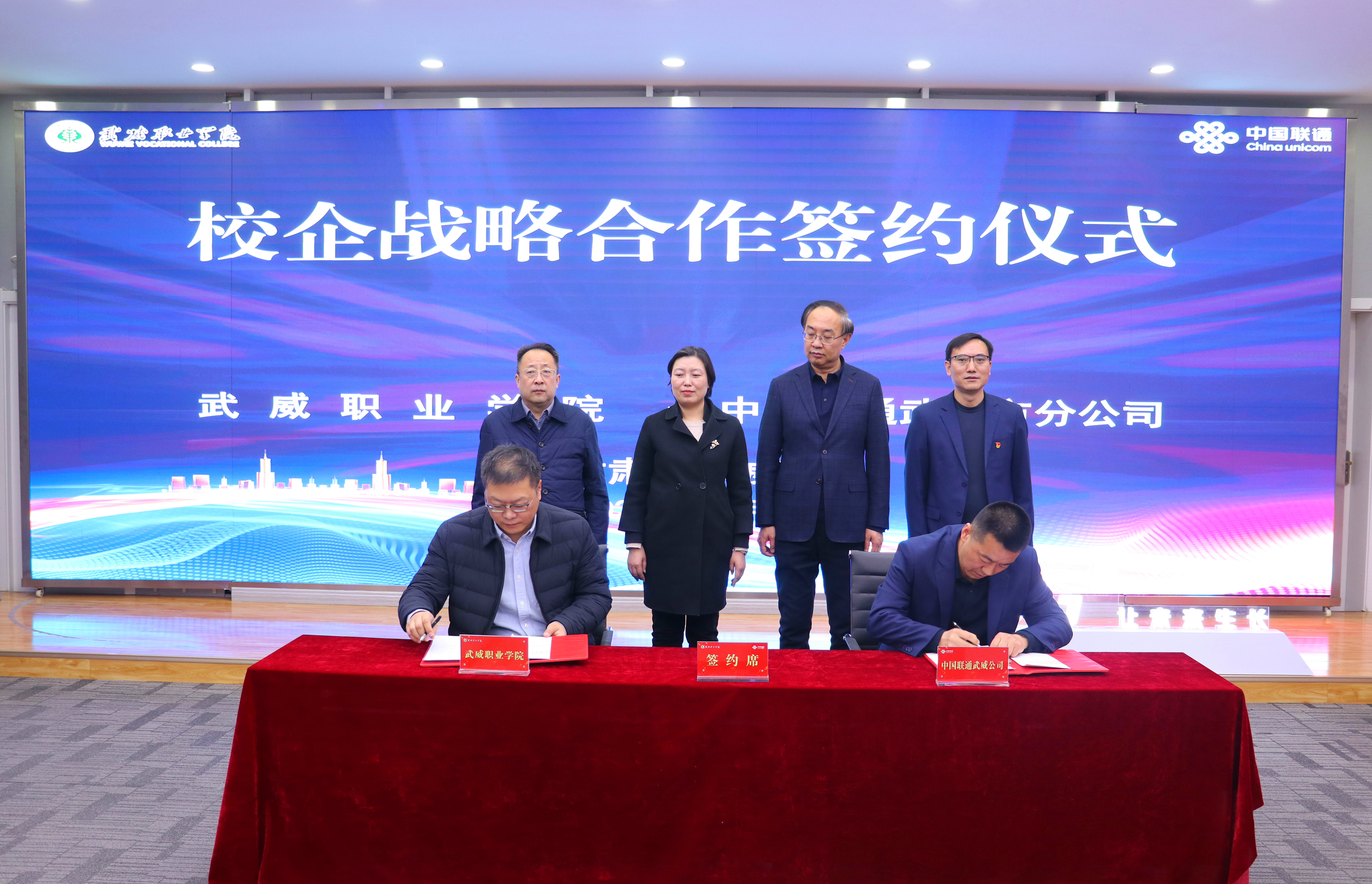 双方签署《武威职业学院与中国联通武威市分公司校企战略合作协议》。