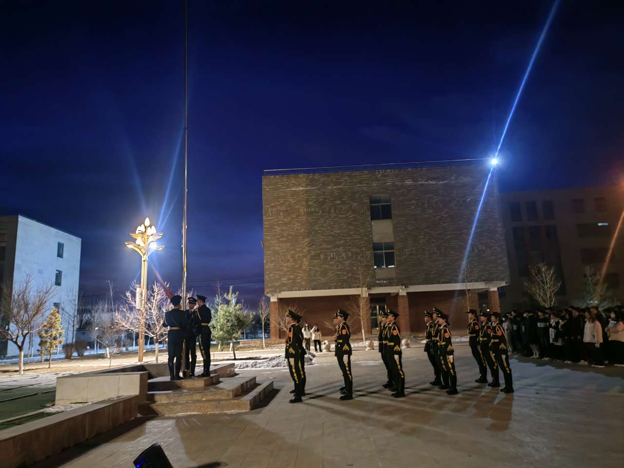 12月16日,信息技术学院全体师生齐聚在图书馆广场举行升国旗仪式。
