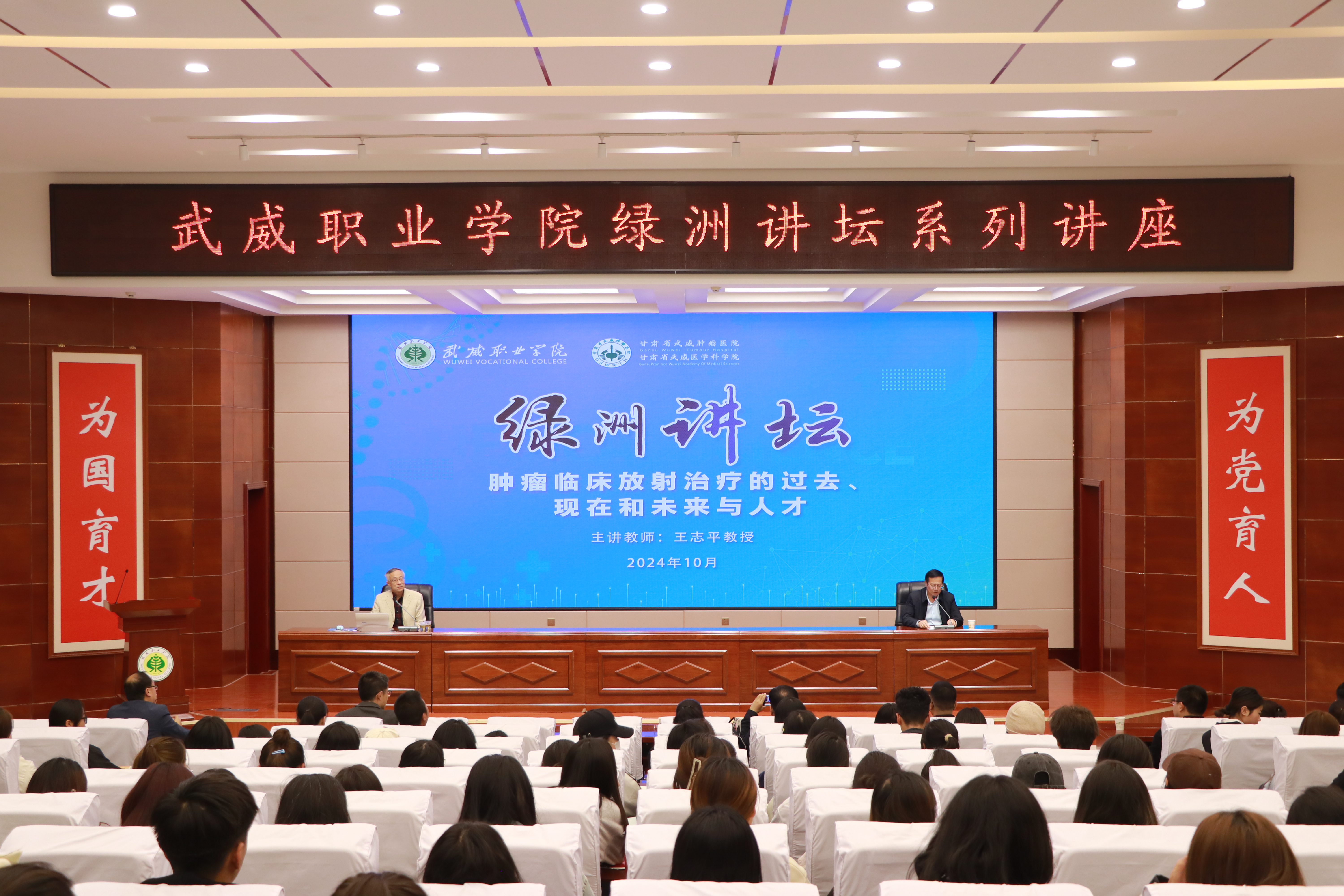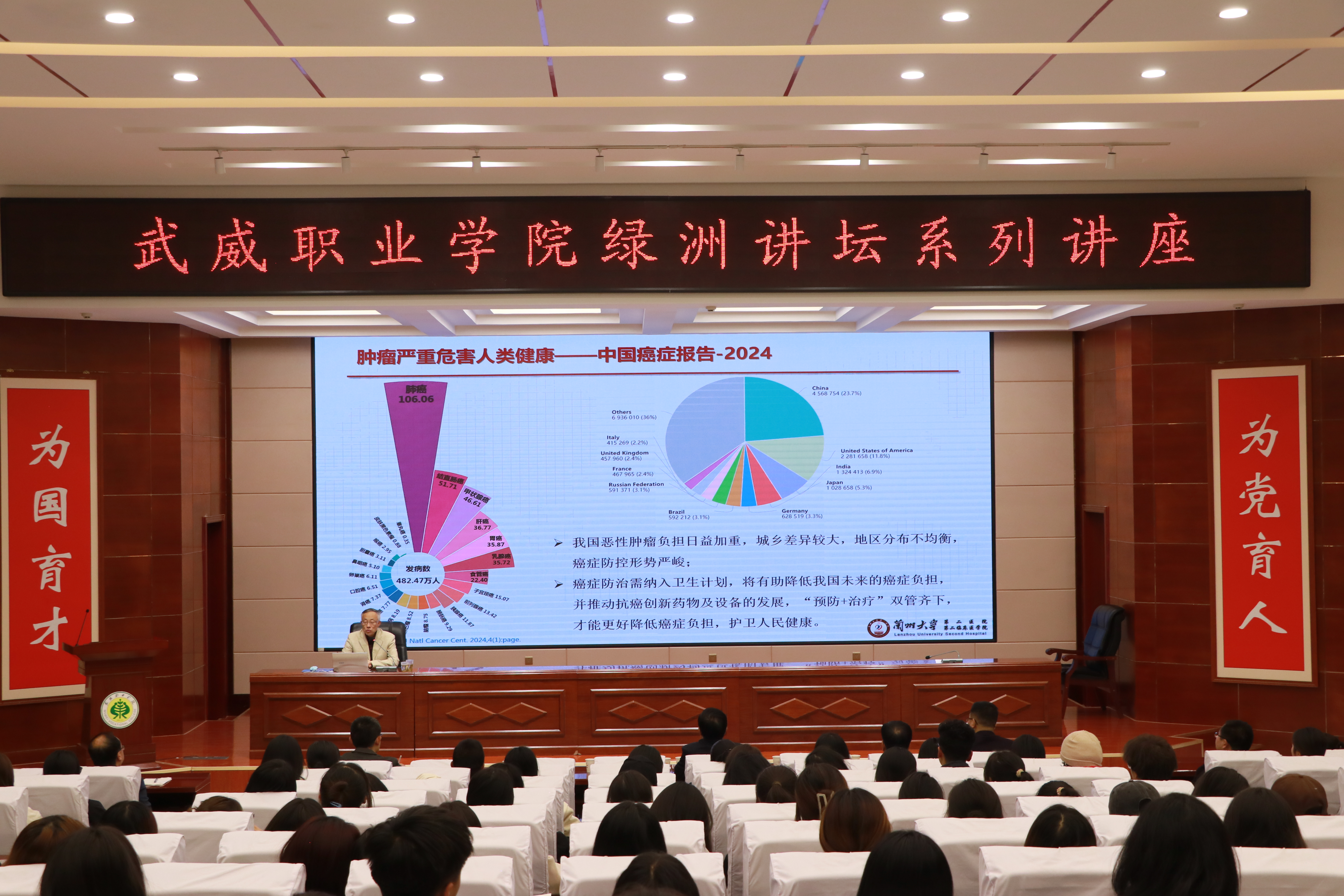 报告会由学校校长、党委副书记张开礼主持,特邀兰州大学第二医院王志平教授作了“肿瘤临床放射治疗的过去、现在和未来与人才”的主题讲座,甘肃省武威医学科学院肿瘤医院医护人员代表、兰州大学实习生代表和学校师生代表共计220余人参加了报告会。