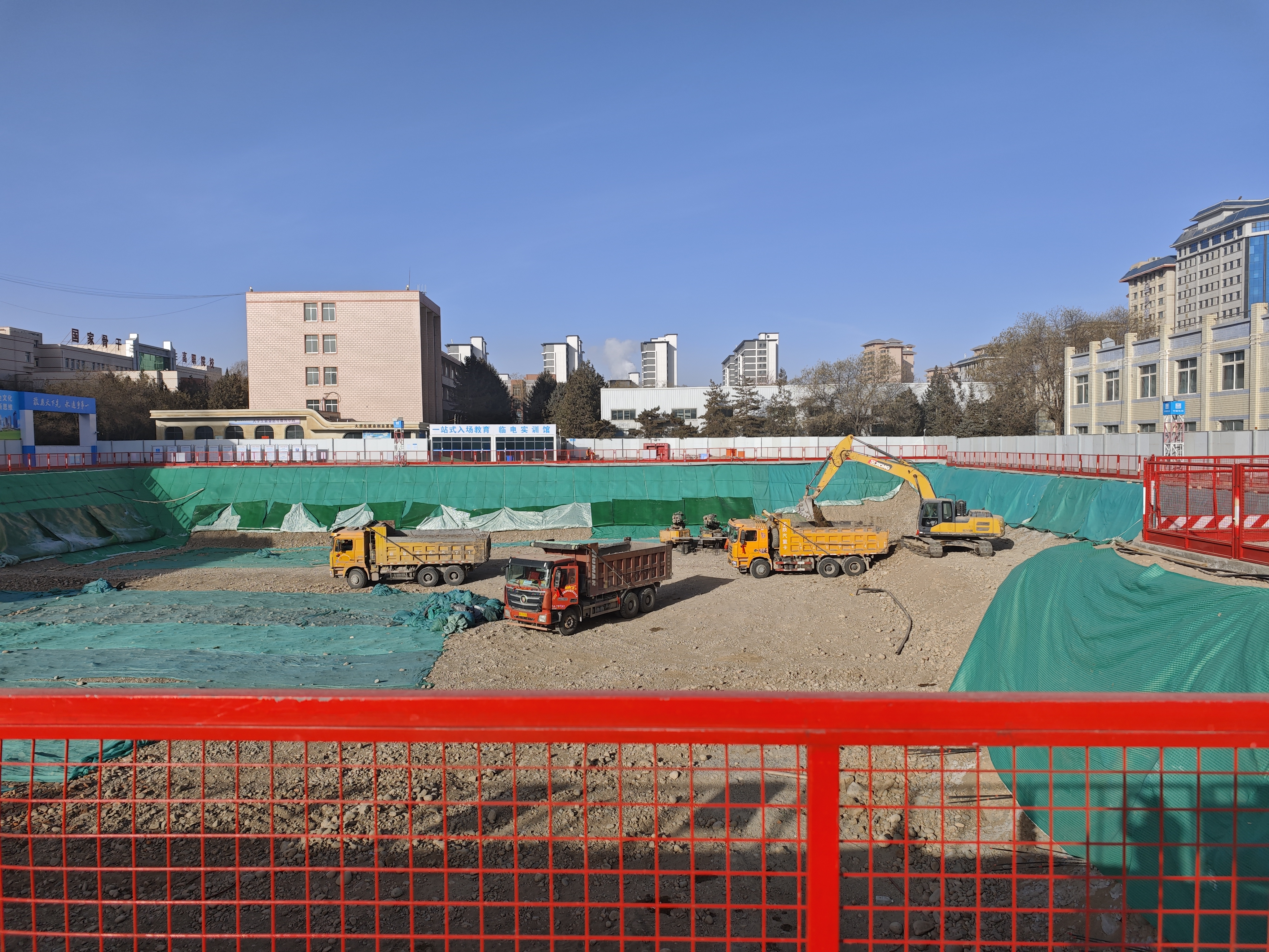 按照市上和学校要求,为推动综合实训楼项目在加压奋进中保持“快干”的节奏,以全局视野科学谋,以拼搏劲头奋力争,以战斗状态快速建,第一时间做好节后复工,抢抓施工工期,2月7日,综合实训楼项目施工单位中建三局集团有限公司项目部管理人员及相关工种施工人员已全部驻场施工,正在进行基坑土方开挖、基坑土钉墙和预应力锚索支护施工。同时,施工单位严格按照武威市大气污染防治相关要求和《武威市建筑工地扬尘污染防治管理办法》,全面贯彻落实建设工地大气污染防治“六个百分百”,将施工扬尘污染防治措施落实到工程施工全过程,促进文明工地的建设。