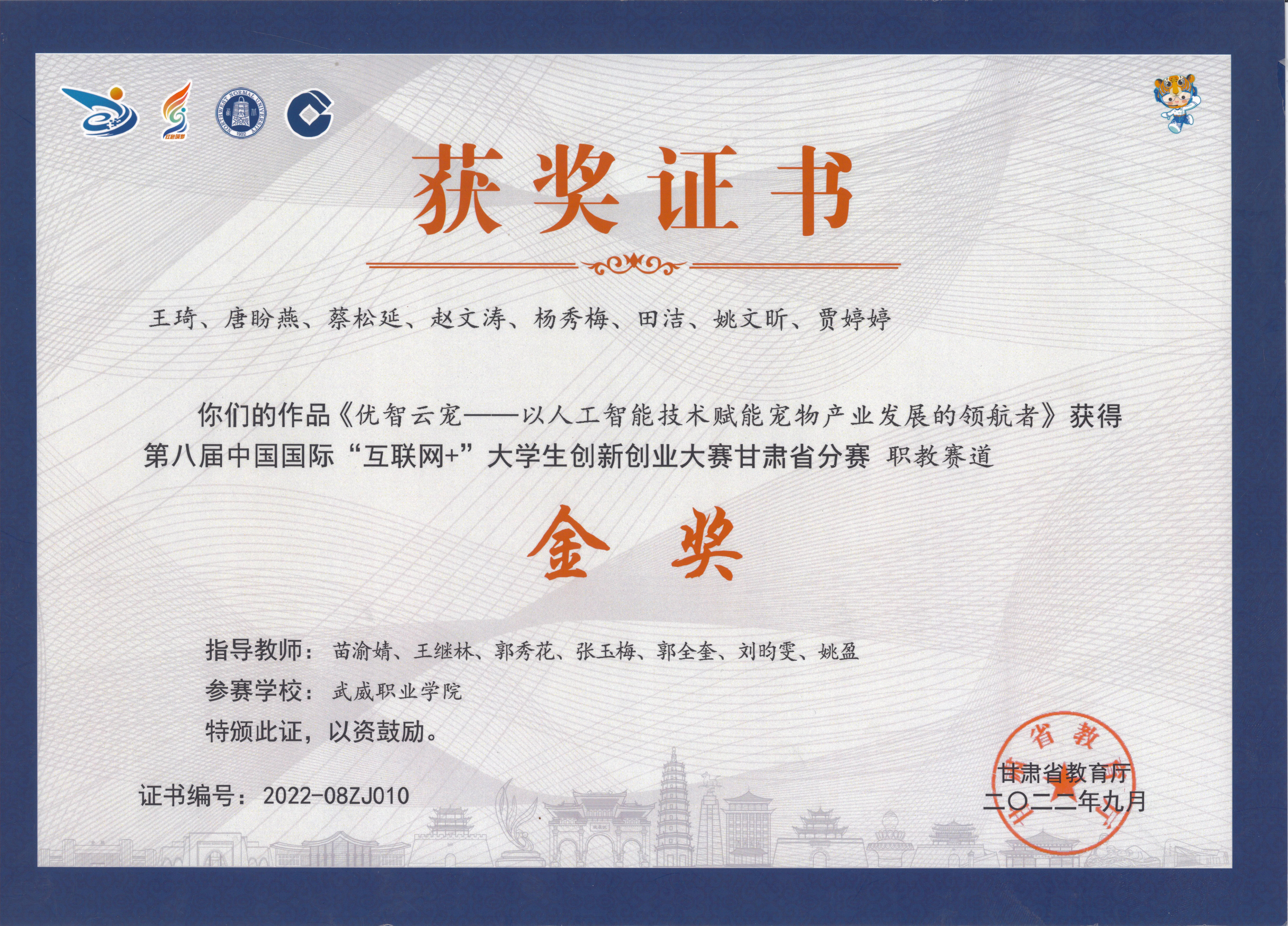 学生获第九届中国国际“互联网+”大学生创新创业大赛甘肃赛区金奖