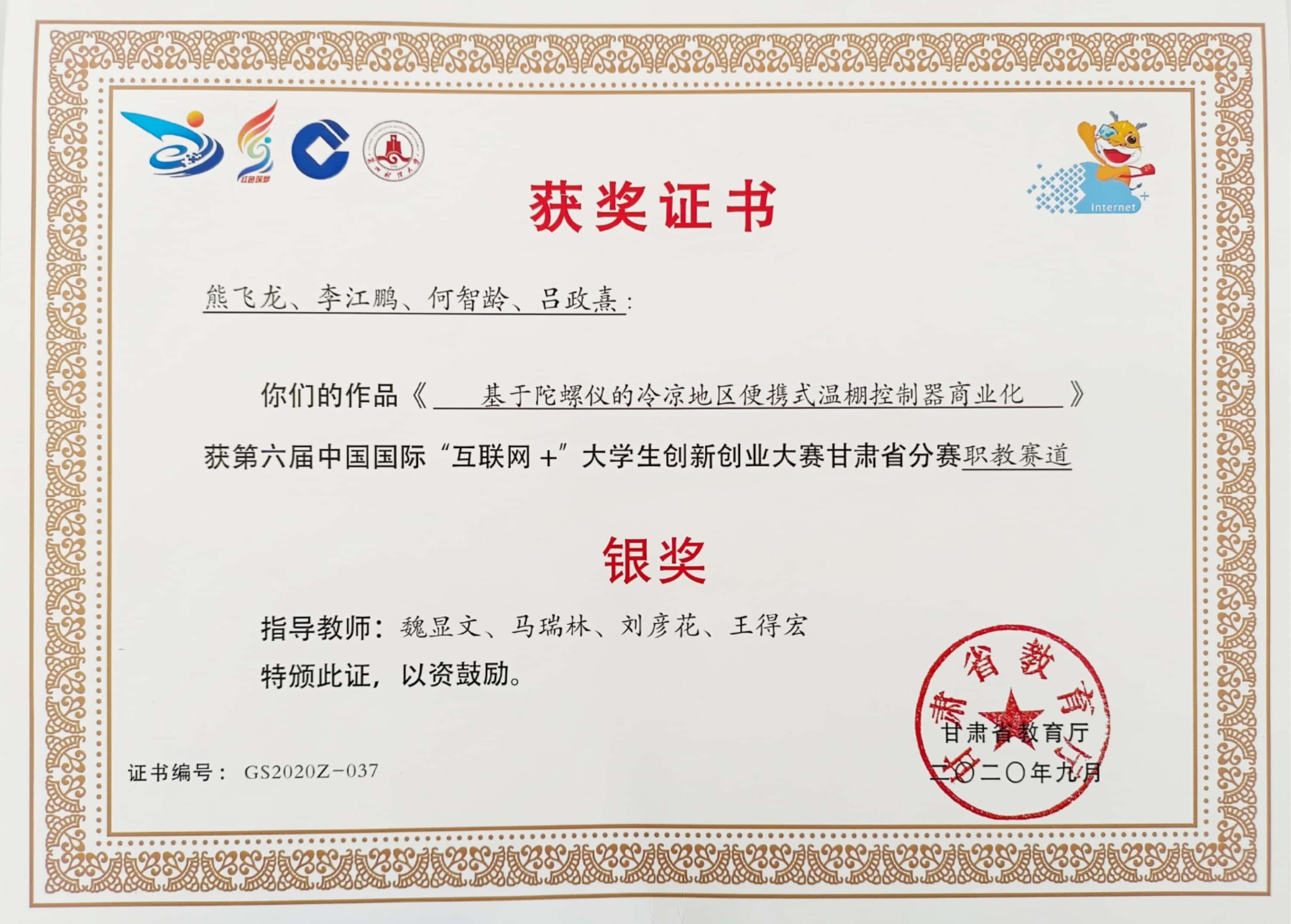 学生获第六届中国国际“互联网+”大学生创新创业大赛甘肃省分赛银奖