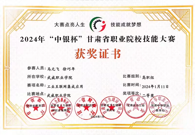 获2024年“中银杯”甘肃省职业院校技能大赛“二等奖”
