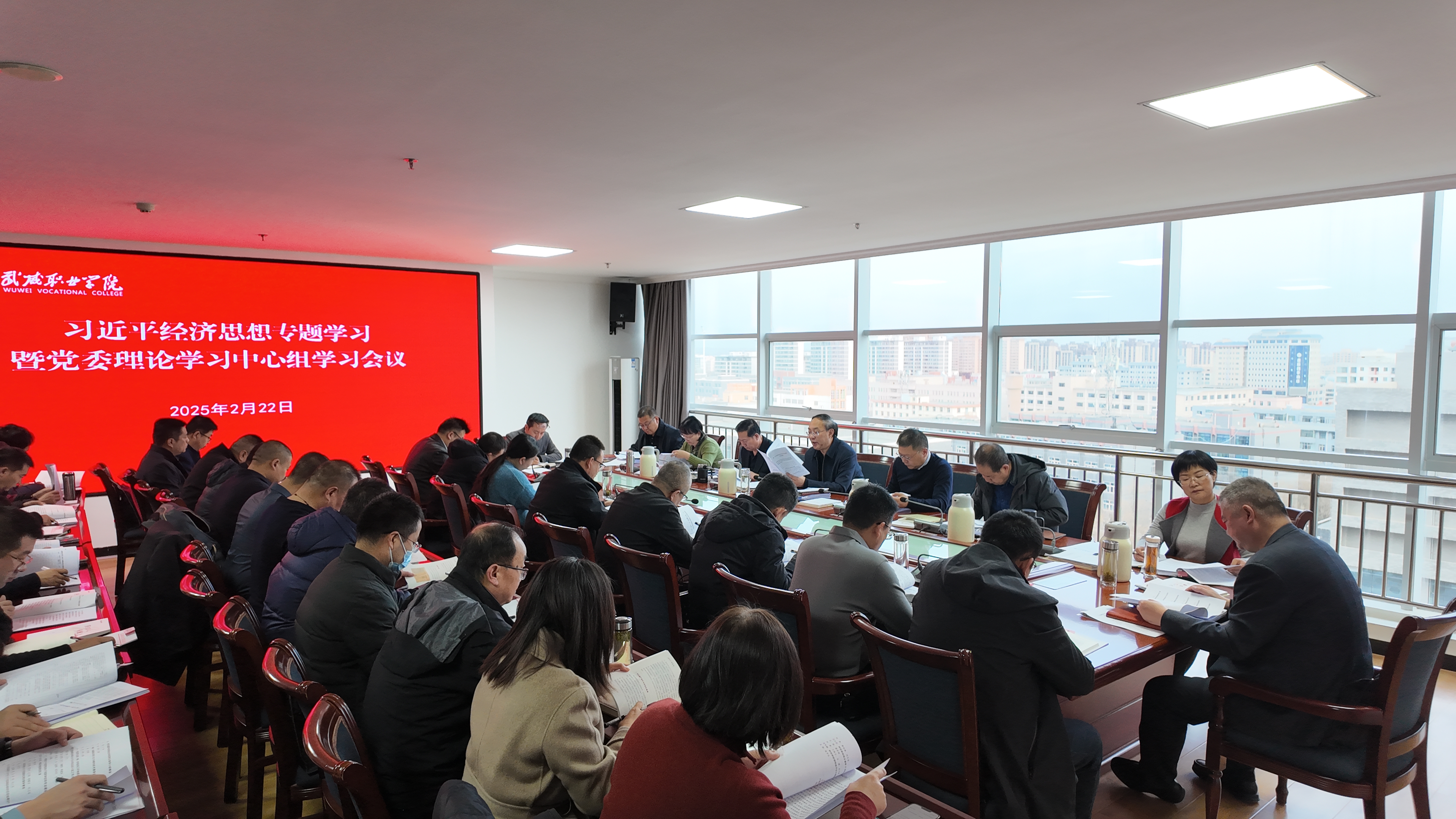 2月22日,学校召开党委理论学习中心组学习会议,专题学习研讨习近平经济思想。校党委理论学习中心组成员参加,校长李海军,各部门、二级学院主要负责人列席。党委书记王宏主持会议并讲话。