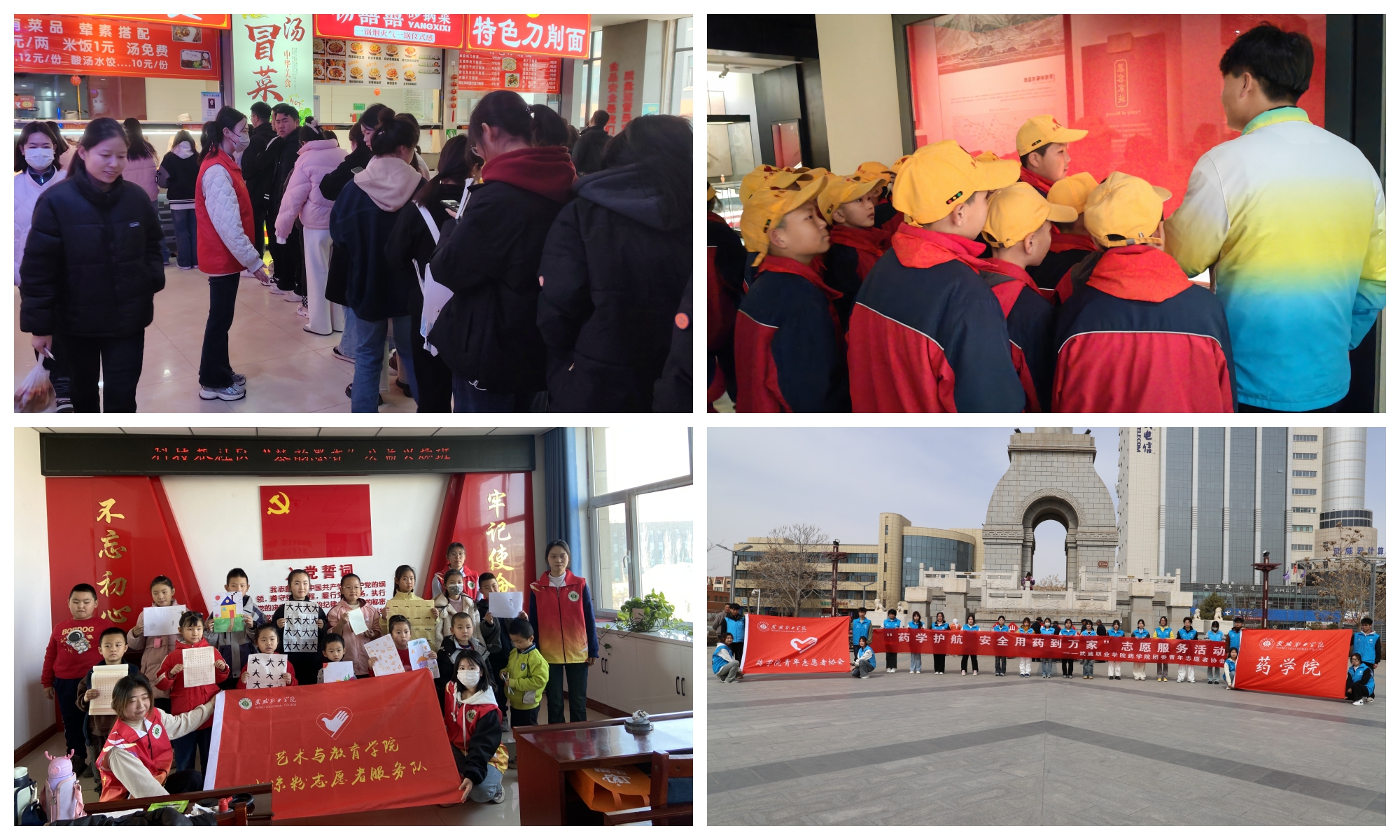 结合专业特色,开展志愿服务活动。3月5日,现代农业学院20余名志愿者在学校餐厅开展“食安校园 你我同行”志愿服务活动,普及食品安全科学知识。3月5日,经济管理学院组织旅游管理专业志愿者走进博物馆,向前来参观的游客义务讲解。3月15日,艺术与教育学院学前教育专业志愿者走进科技巷社区,为留守儿童带去丰富的兴趣活动,激发小朋友们对唱歌、舞蹈、书法、乐器演奏等特长的学习热情。3月20日,医学技术学院开展口腔卫生健康宣传志愿服务活动,倡议改善刷牙习惯,注重口腔健康。3月22日,药学院志愿者在文化广场开展“药学护航,安全用药到万家”志愿服务活动,为市民们科普正确用药知识,讲解安全用药和药品保存常识,通过发放宣传资料、现场讲解等方式,详细介绍药品回收的重要意义。