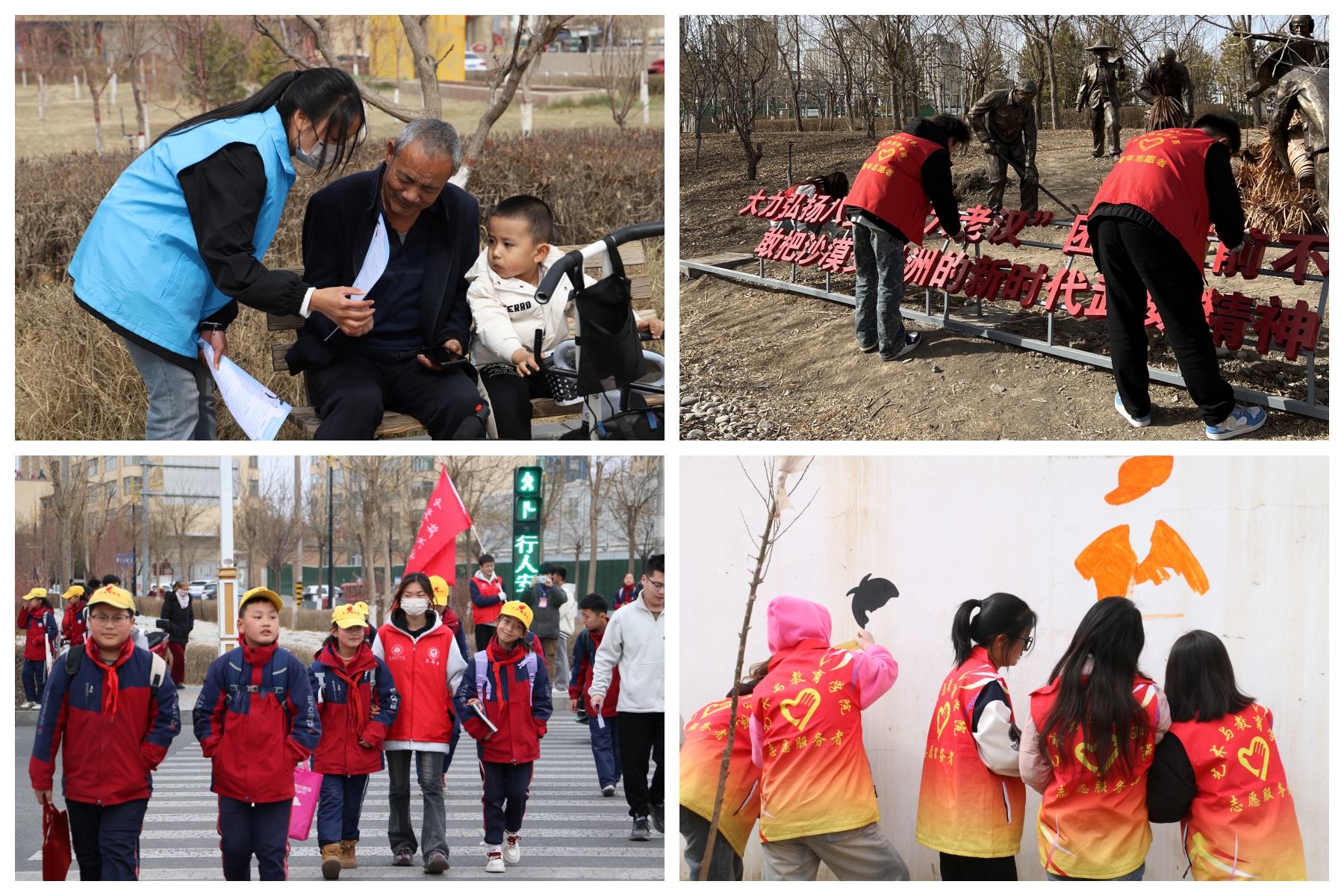 开展青春社区志愿服务活动。3月4日,护理学院组织15名志愿者前往西关街社区开展“保护环境,建设美丽社区”志愿服务活动,活动中志愿者们手持清洁工具,铲除墙面小广告,倡导绿色环保生活理念,引导市民共同守护美好家园。3月9日,现代农业学院组织志愿者前往海藏公园开展“公园环保行动派”志愿服务活动,清理杂草杂物,向过往群众宣传垃圾分类知识。3月6日,中科低碳新能源技术学院志愿者在学校周边十字路口开展文明交通劝导活动,向行人普及交通安全知识、提醒遵守交通信号灯,向骑行者强调佩戴安全头盔、不逆行、不闯红灯的重要性,组成护学小分队引导周边小学的同学有序通过马路等。3月29日,艺术与教育学院学前教育专业20余名志愿者前往富鑫源社区化身“社区美育师”,与甘肃十二元素传媒有限公司设计师共同完成了“邻里和谐”主题墙绘。