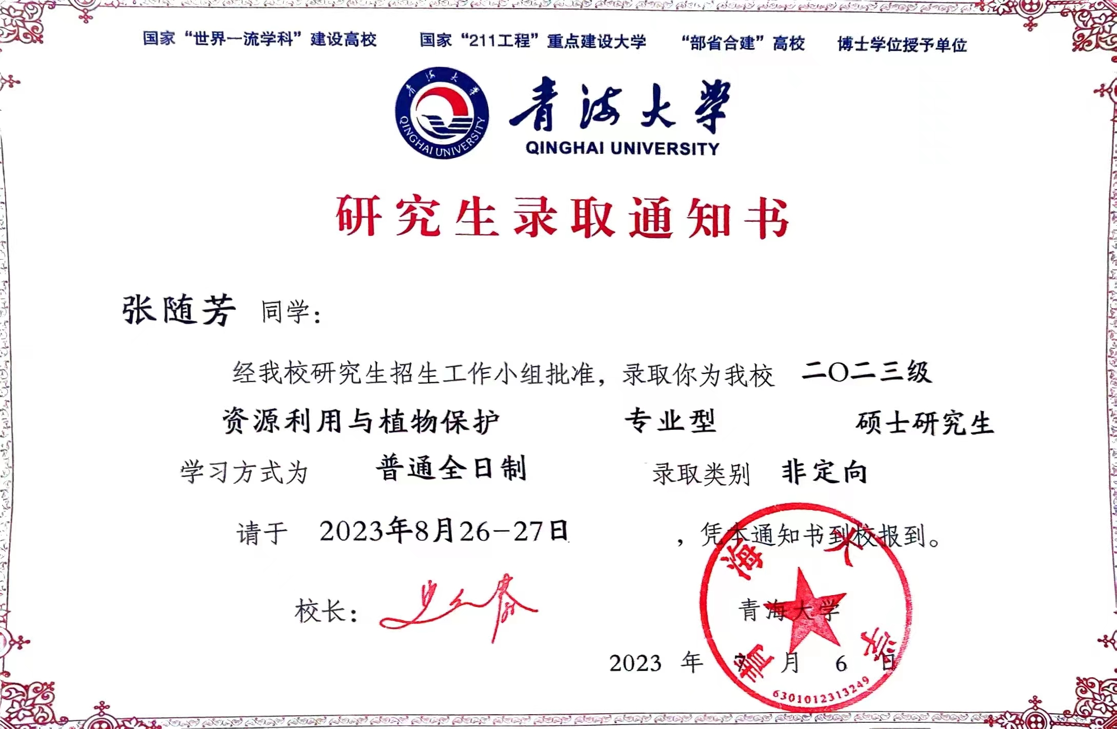 张随芳,2018级植物保护与检疫技术大专班,2021年考取河西学院农学本科专业,2023年考取青海大学资源利用与植物保护专业硕士研究生。