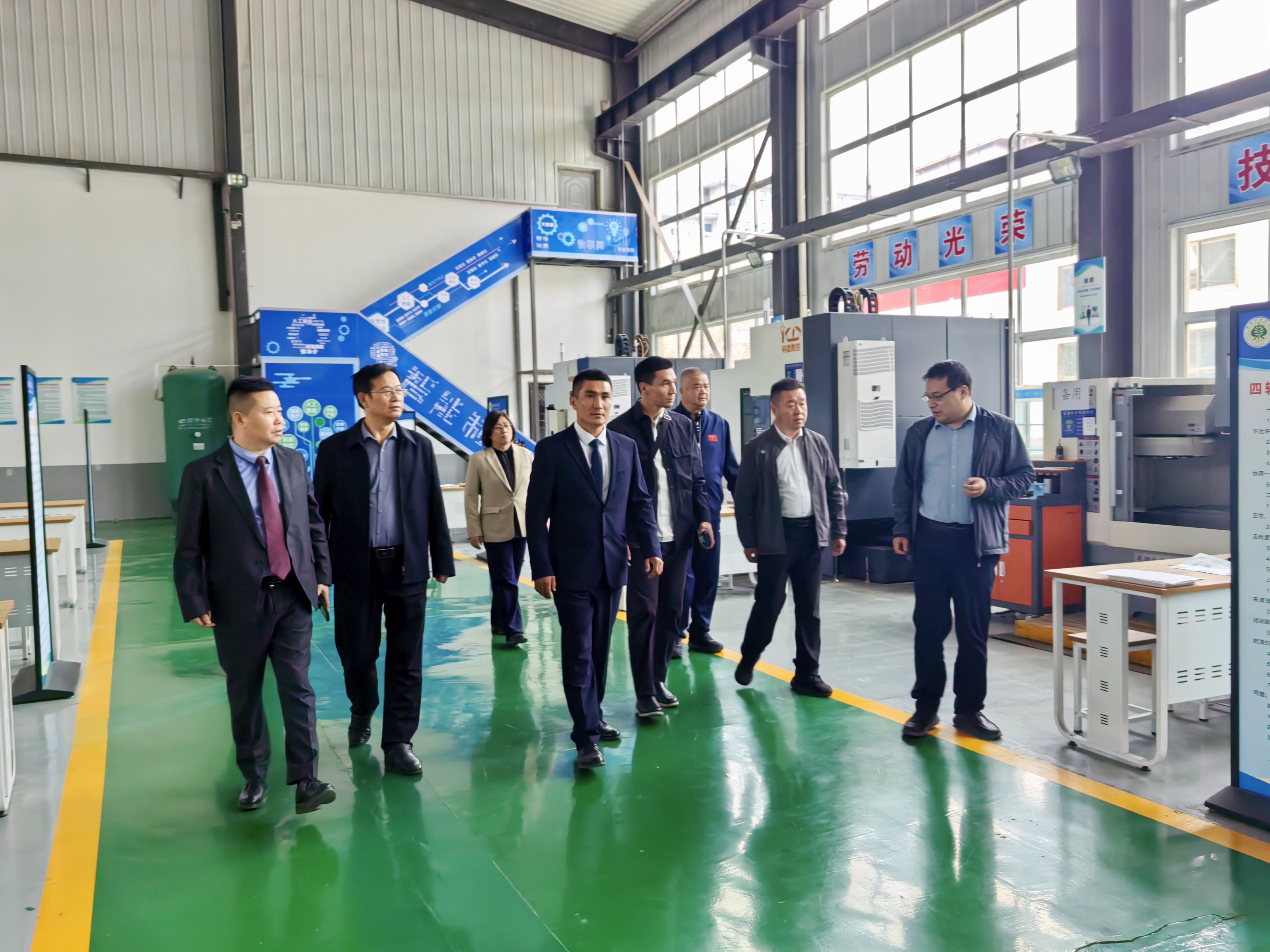 吉尔吉斯斯坦代表一行参观了我校智能制造实训基地,张开礼详细介绍了学校在新能源汽车技术、智能制造等专业领域的实训设施和取得的教学成果。