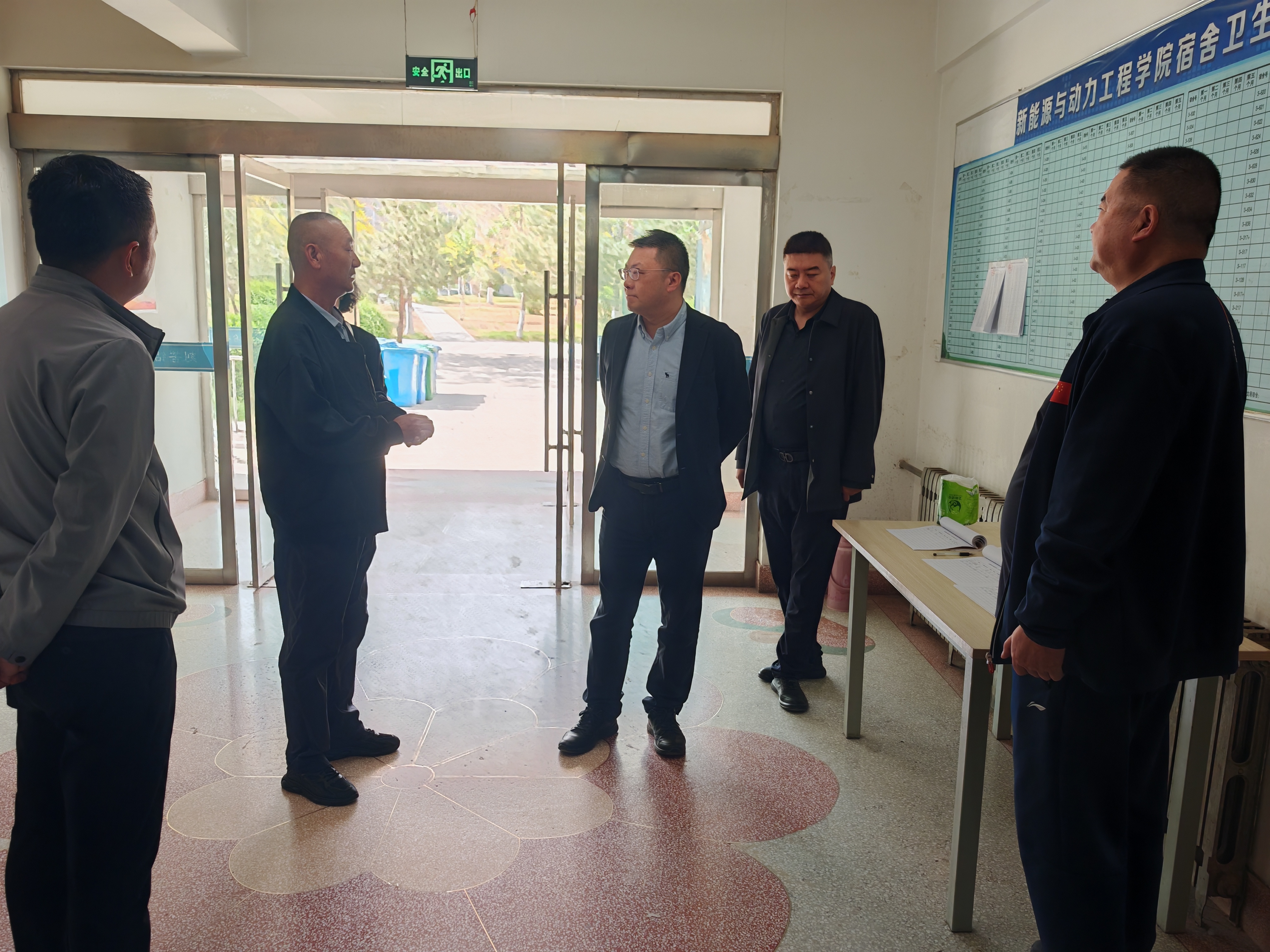 办公室、学生工作部、安全保卫处、基建处等部门负责人一同检查。