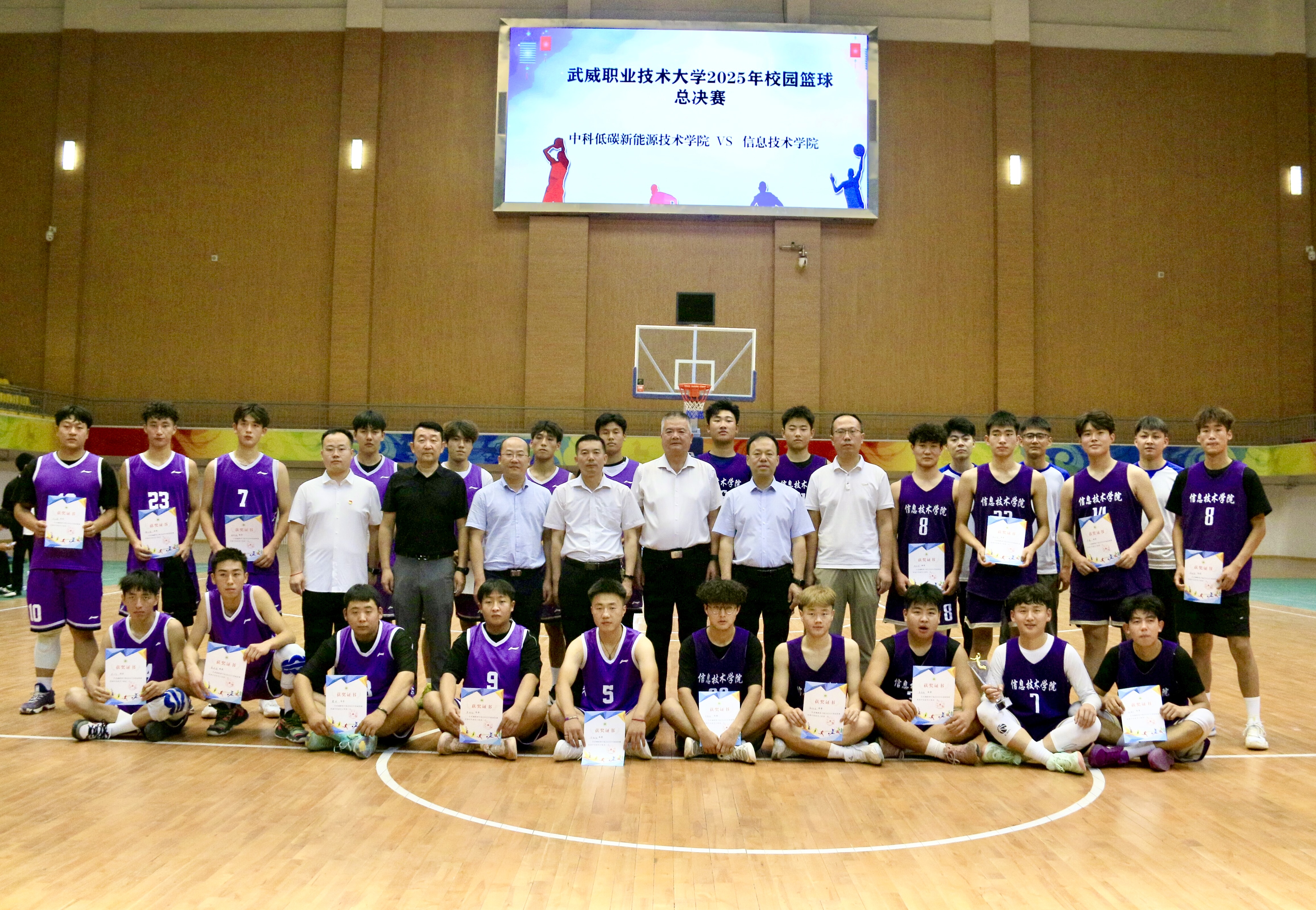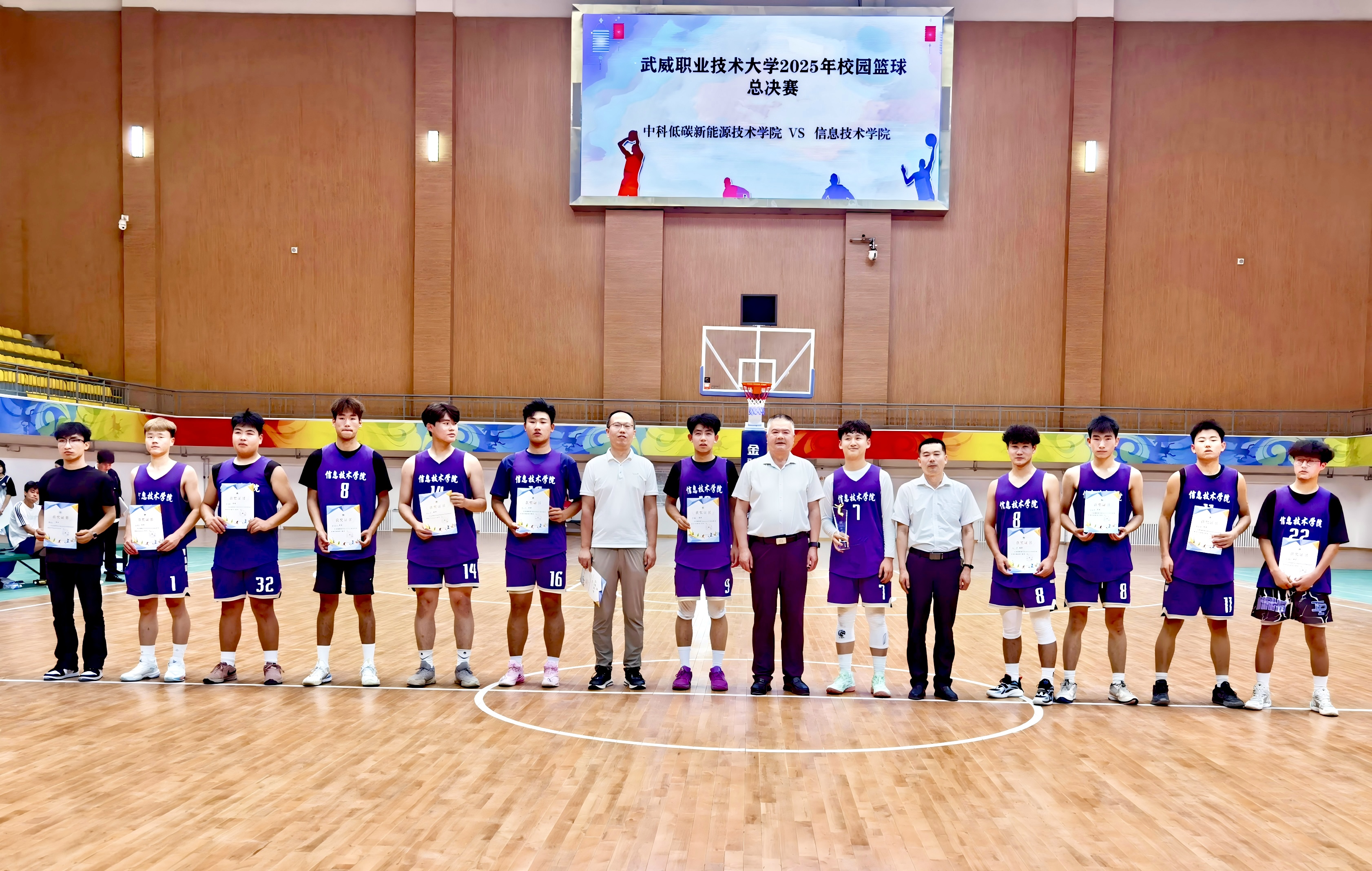 6月26日下午,由学校体育运动委员会主办,艺术与教育学院承办的2025年校园篮球比赛男子组决赛在体育馆举行。经过激烈比拼,信息技术学院代表队以42:39战胜中科低碳新能源学院代表队,获得本次篮球比赛男子组冠军。学校党委委员、副校长王守云到场观看比赛并为获奖代表队颁奖。