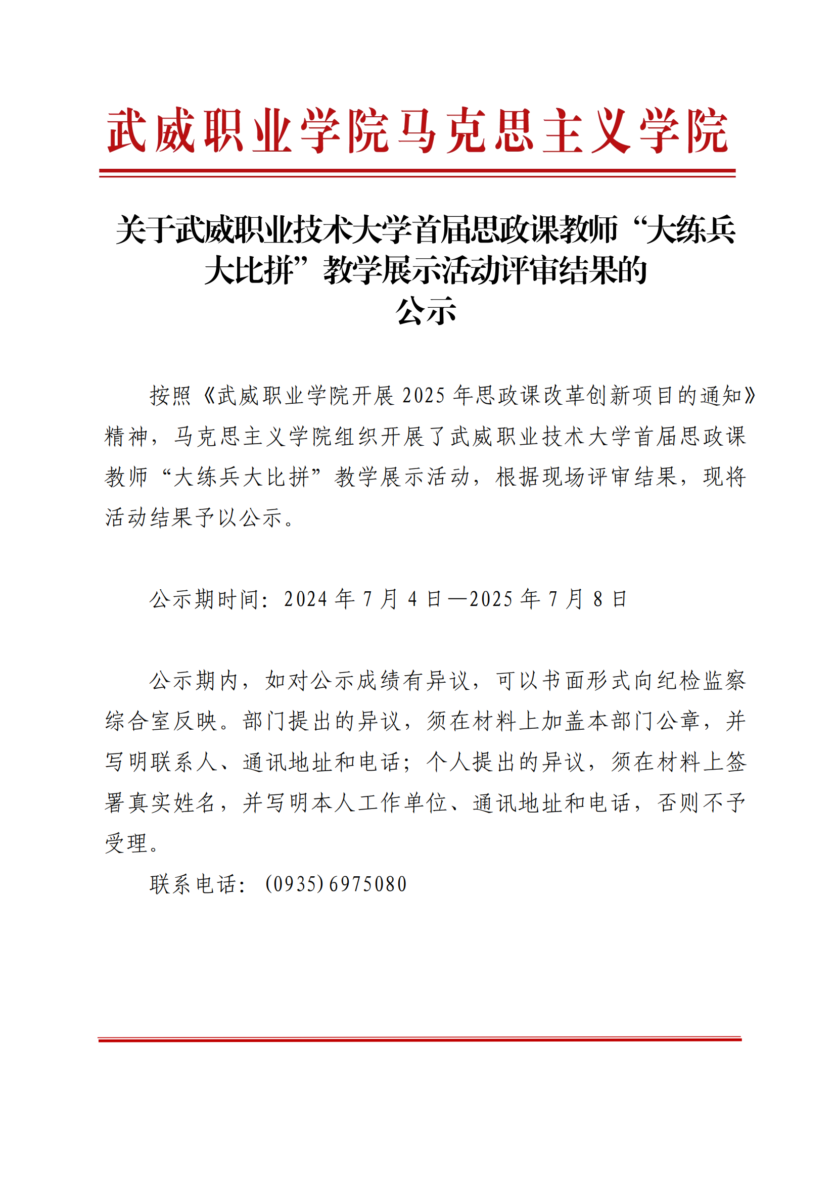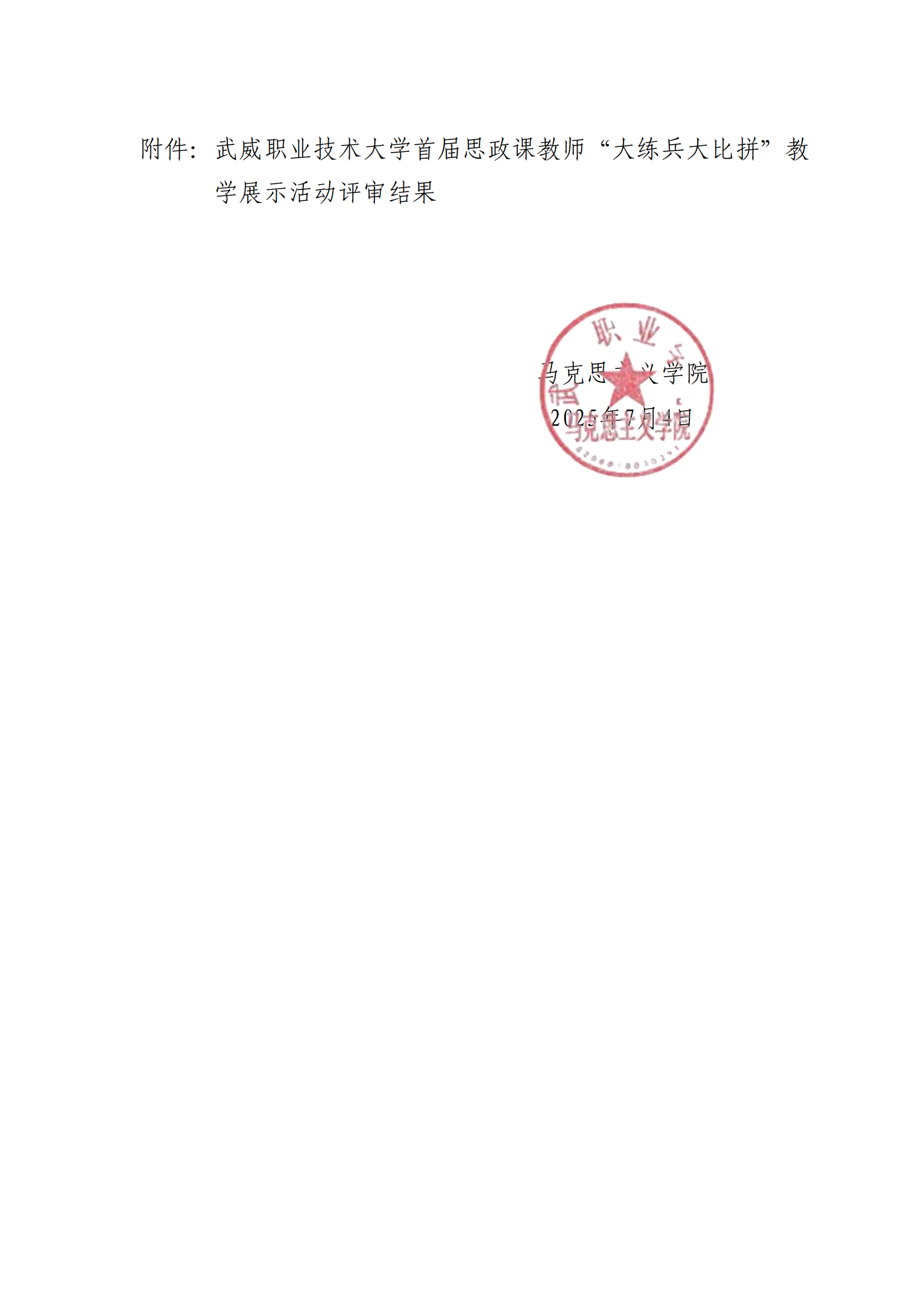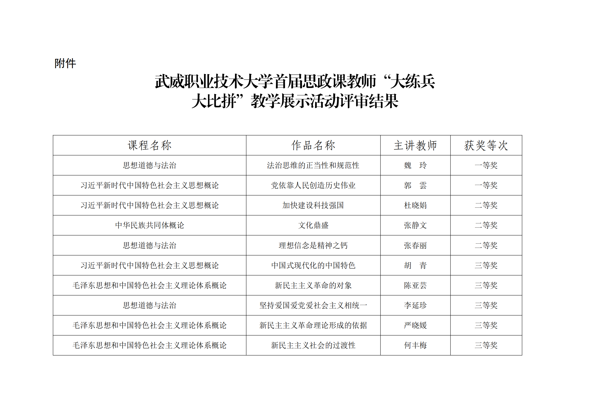 武威职业技术大学首届思政课教师“大练兵大比拼”教学展示活动评审结果的公示