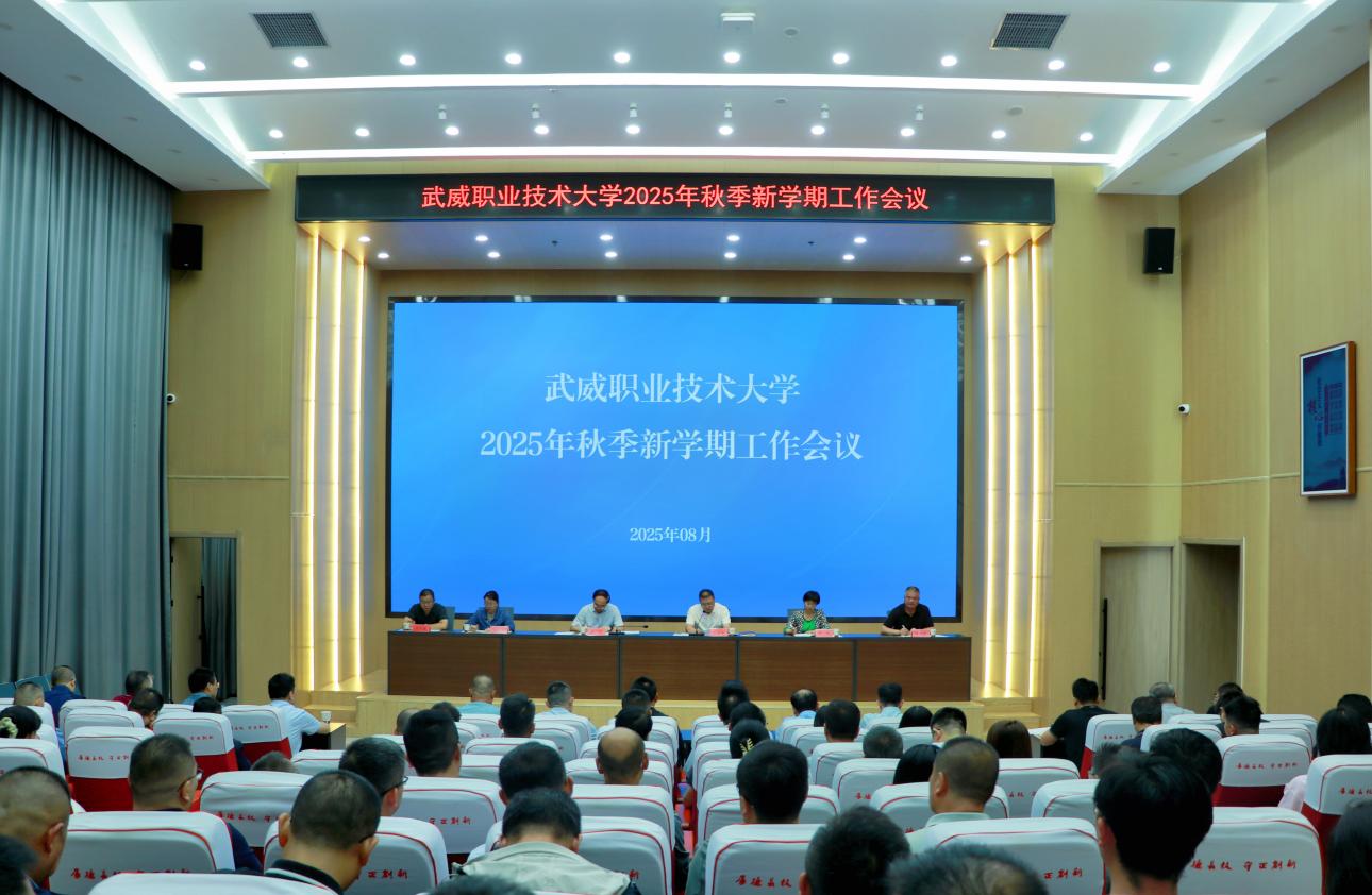 乘势启新秋,实干谱新章。8月22日,武威职业技术大学在能源科技楼一楼学术报告厅召开2025年秋季新学期工作会议,全面总结春季学期学校相关工作,重点安排部署新学期主要工作。党委书记王宏出席会议并讲话,在家校领导、全体中层干部、博士代表、民主党派代表及教师代表共110余人参加会议。校长李海军主持会议。