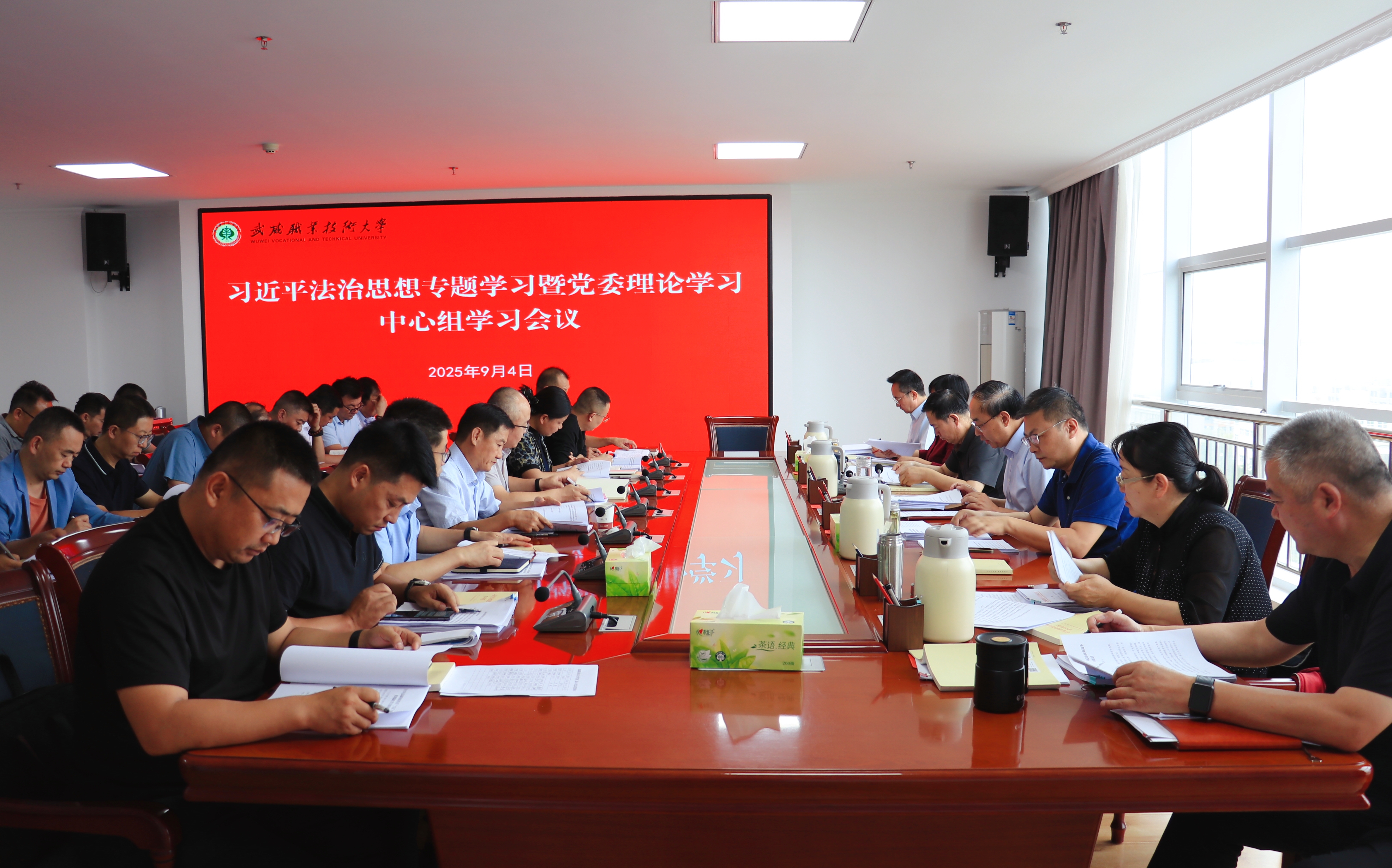 会议传达学习习近平总书记在纪念中国人民抗日战争暨世界反法西斯战争胜利80周年大会上的重要讲话、习近平总书记在2025年第17期《求是》杂志发表的重要文章《弘扬伟大抗战精神,向着中华民族伟大复兴的光辉彼岸奋勇前进》;专题学习习近平法治思想,主要传达学习《习近平论全面依法治国》《习近平法治思想学习纲要》《习近平法治思想学习问答》等内容;传达学习法律法规和教育法规等相关内容;校党委理论学习中心组成员围绕习近平法治思想,紧密结合思想和工作实际,深入开展了交流研讨。