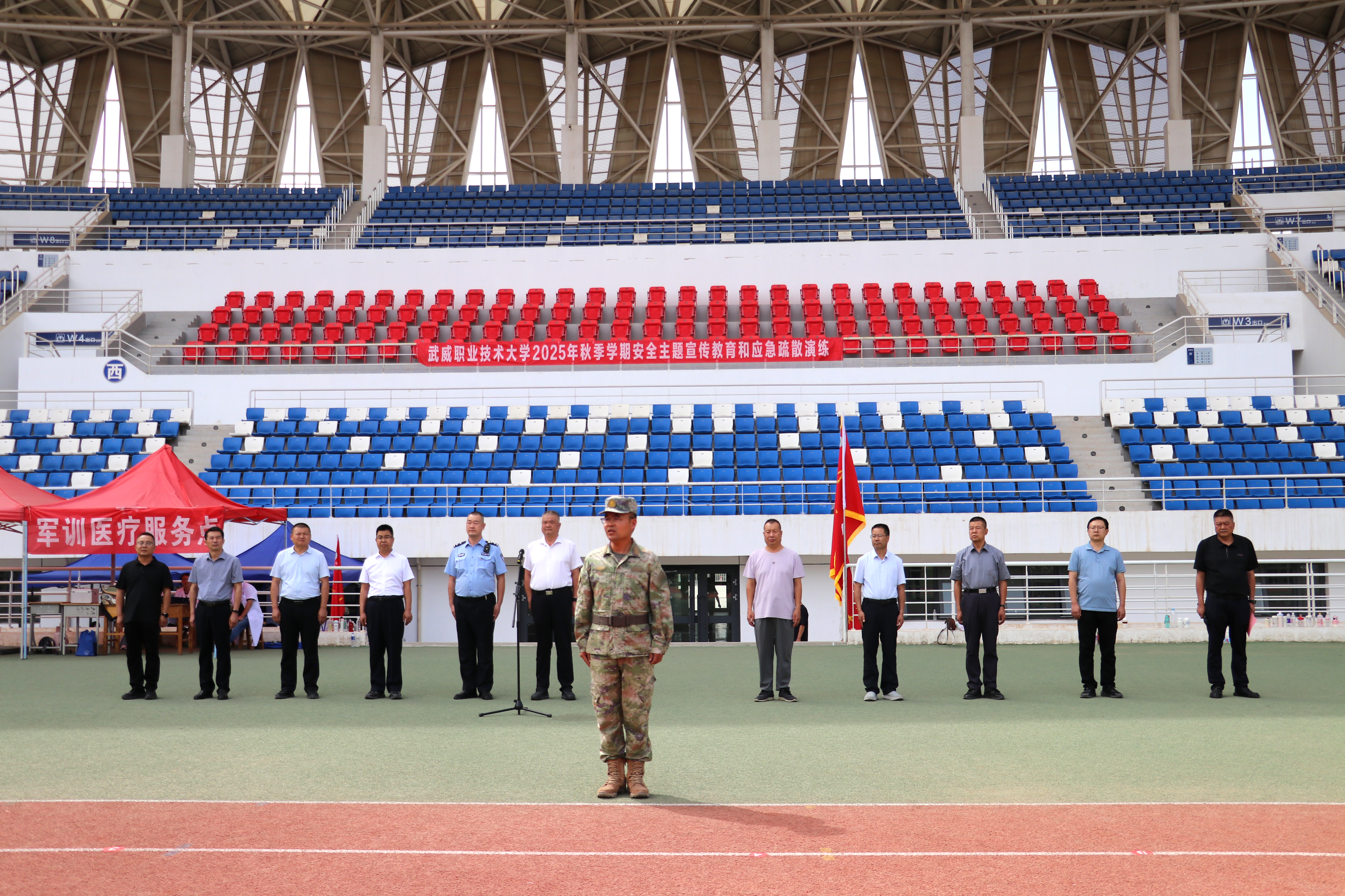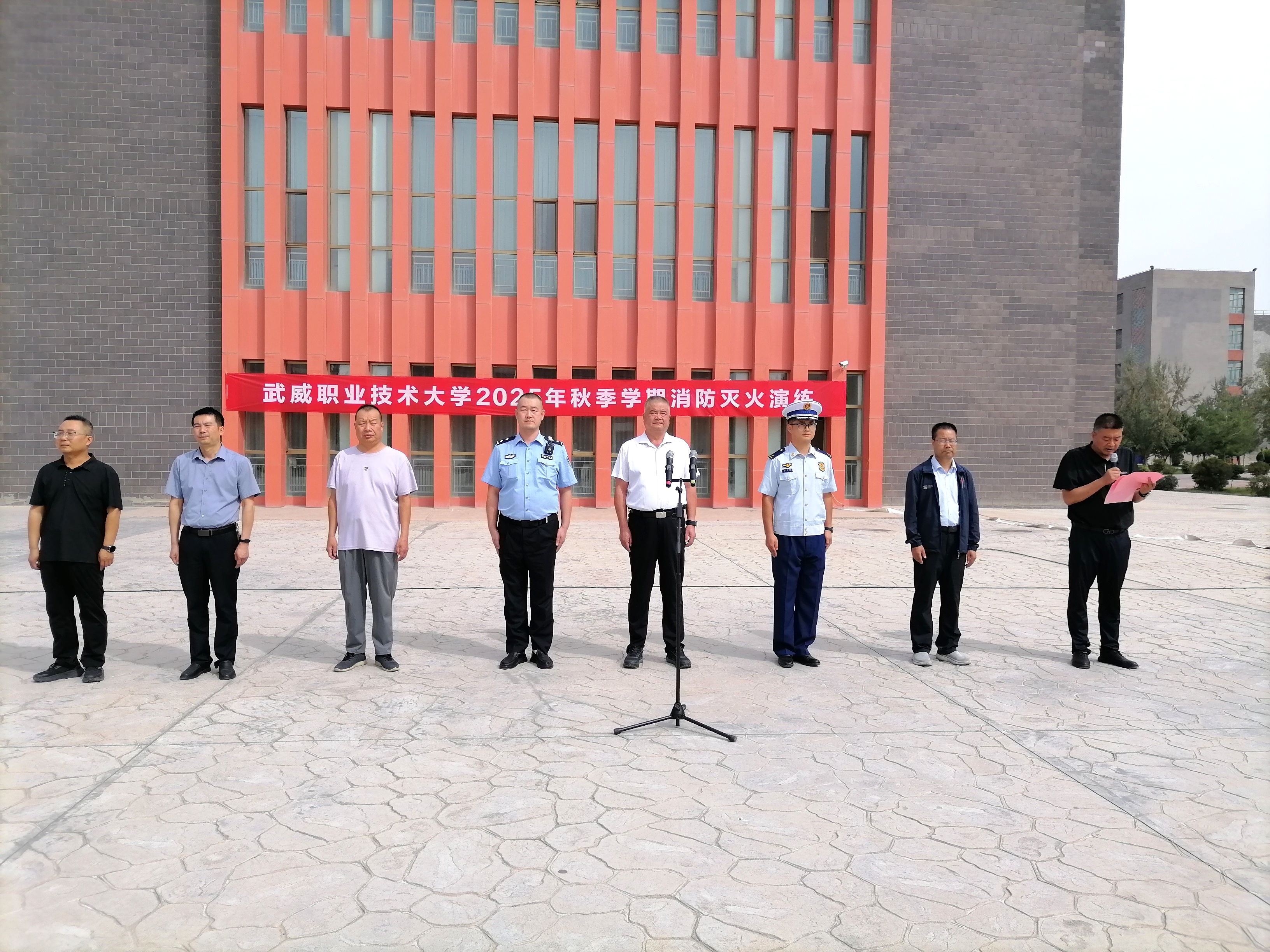 9月10日,学校举行2025年秋季学期安全主题集中宣传教育和应急疏散暨灭火演练活动,学校新进教师,食堂、锅炉房、实验实训室等重点岗位管理人员,2025级全体学生共5000余人参加演练。学校党委委员、副校长王守云,军训教官,武威市公安局相关部门同志,各学院、各部门负责人现场观摩演练。演练活动由安全保卫处处长李欣主持。