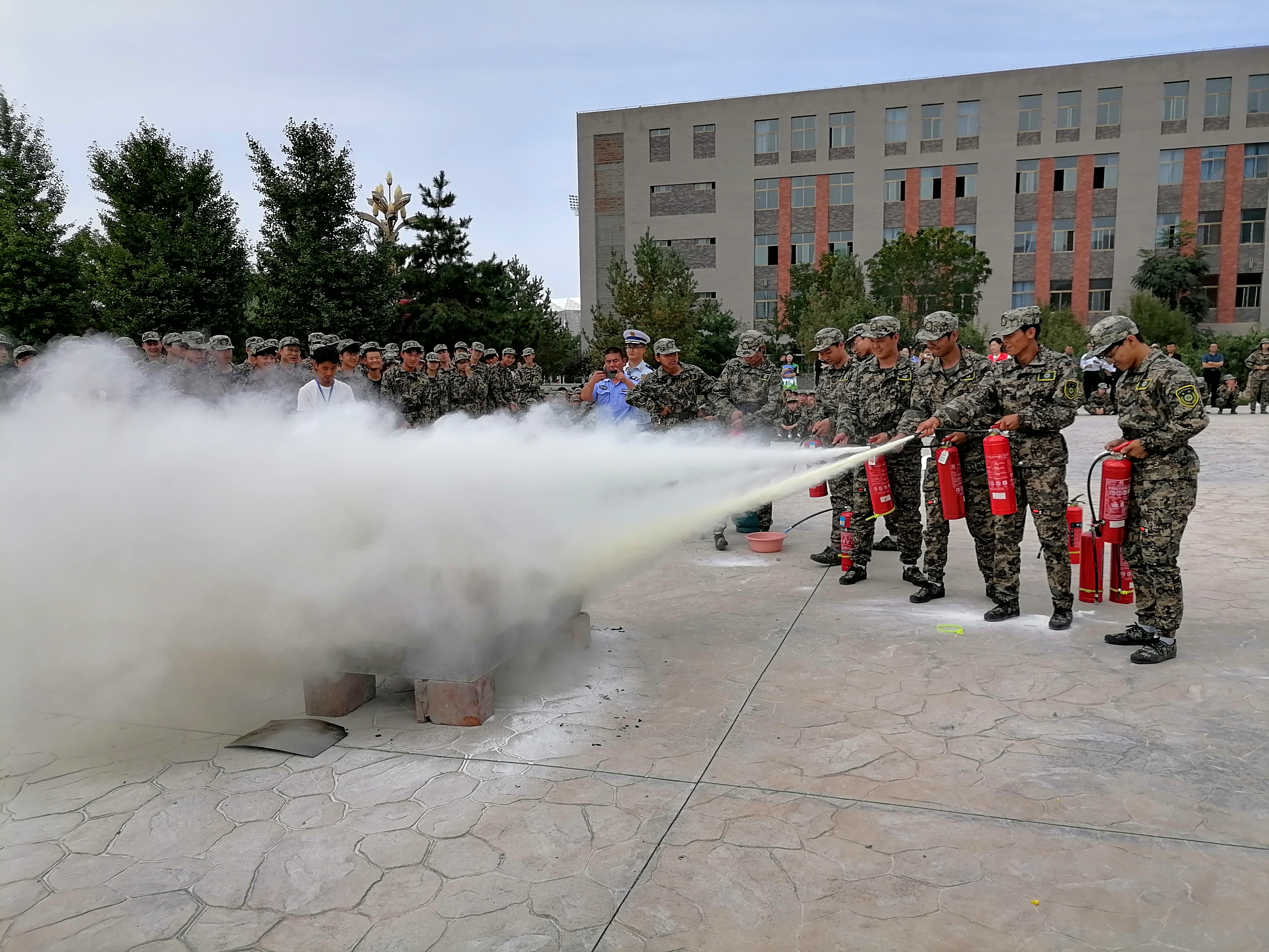 消防灭火演练现场,在凉州区消防救援大队指战员的讲解和示范下,同学们学习了如何正确进行火灾报警、使用灭火器灭火、处置着火液化气瓶等消防安全常识和技能,并组织参演人员进行了实操,进一步提升了师生的消防安全意识和消防应急处置能力。