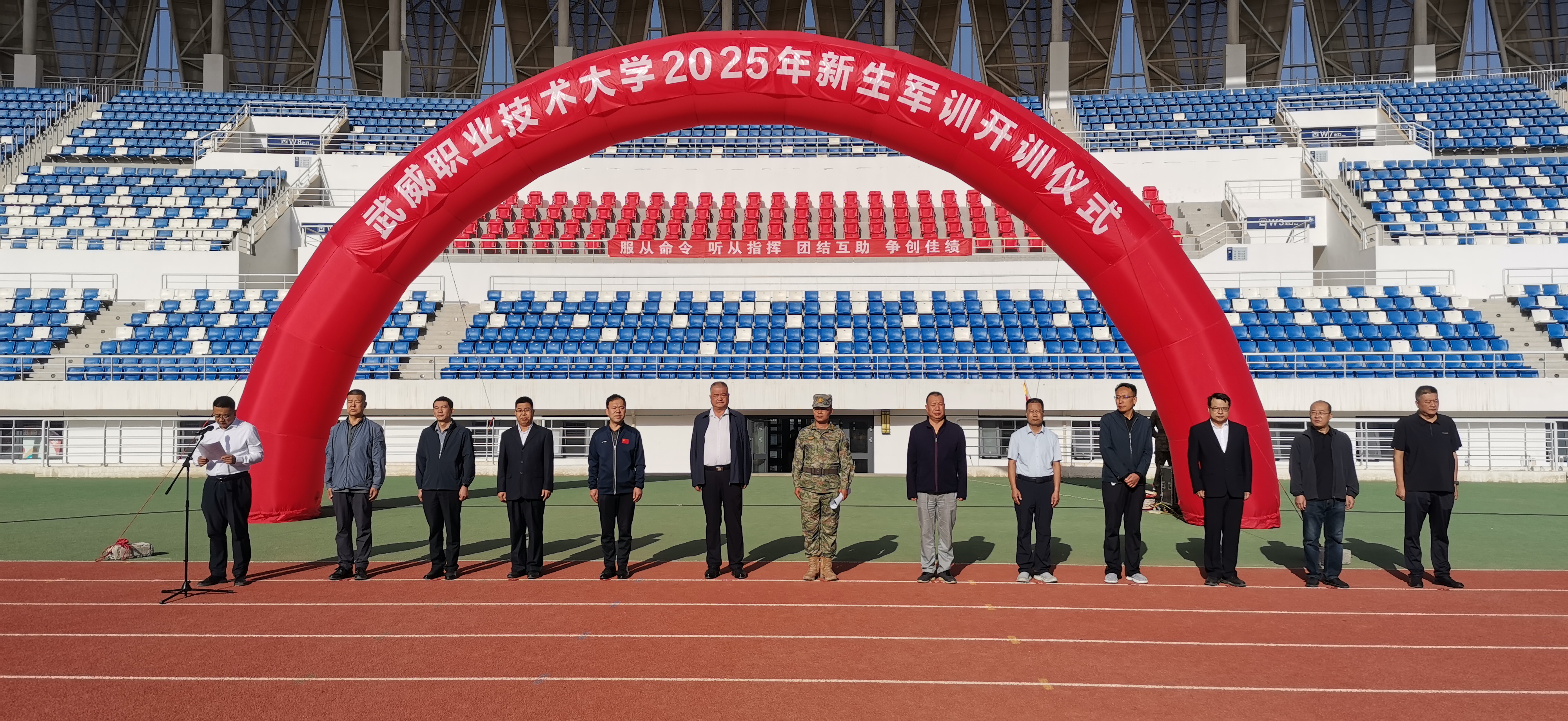 9月8日,武威职业技术大学2025级新生军训开训动员大会在学校体育场举行。全体新同学整齐列队,以饱满的精神状态迎接大学的重要一课。学校党委委员、副校长王守云,军训总教官翟波涛中校以及各二级学院负责同志、承训部队教官、教师代表和2025级全体新生参加大会。大会由学生工作部负责人张世亮主持。