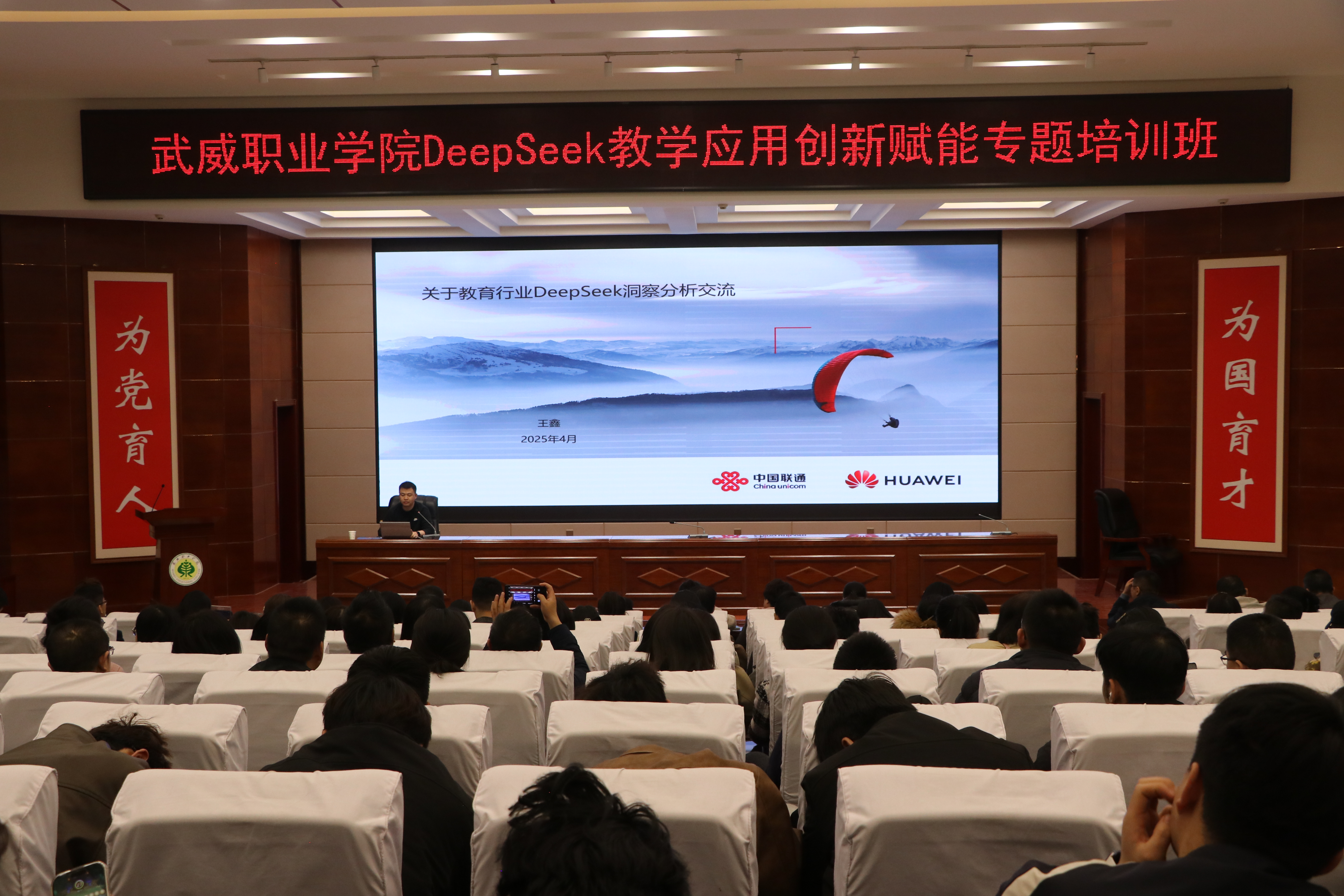 为深入探讨DeepSeek技术的应用,助力学校师生运用AI工具进行教学实践、智慧课程建设与科学研究工作,为教学改革与教学创新实践筑基赋能。4月3日,学校邀请联通数据智能有限公司教育行业解决方案专家包红梅和华为技术有限公司智算产业AI架构师王鑫,举办了“DeepSeek教学应用创新赋能”专题讲座。讲座由网络安全与信息技术中心负责人史子新主持,学校各部门、二级学院教师代表,信息技术学院学生代表共计220人参加。