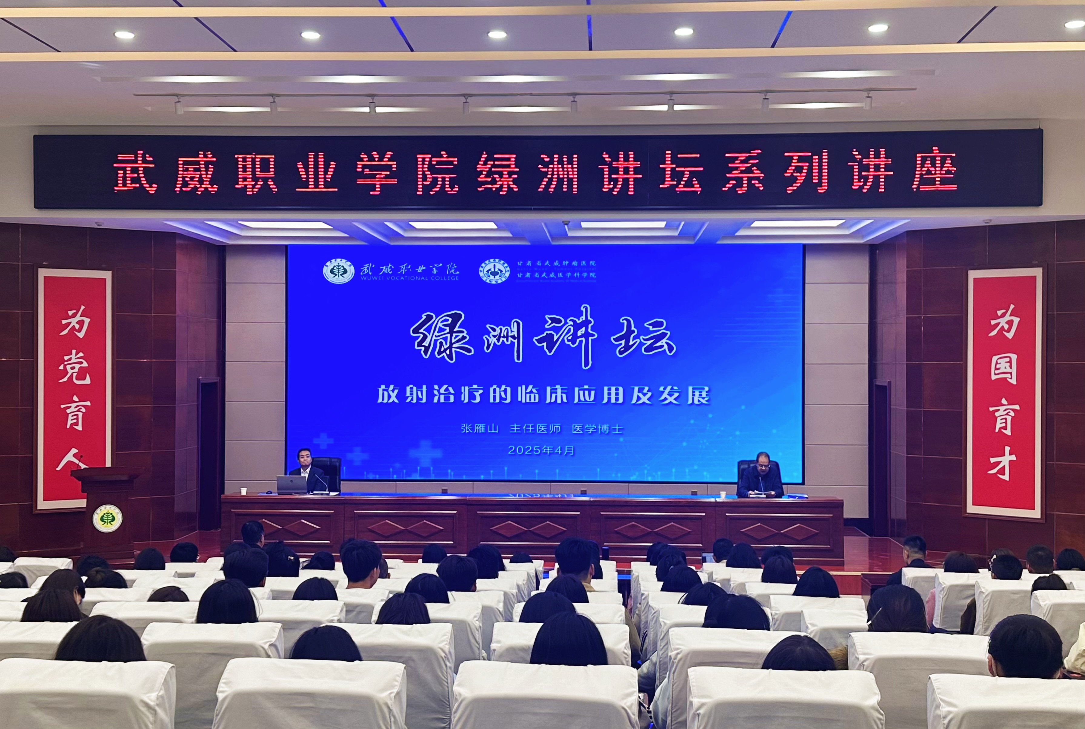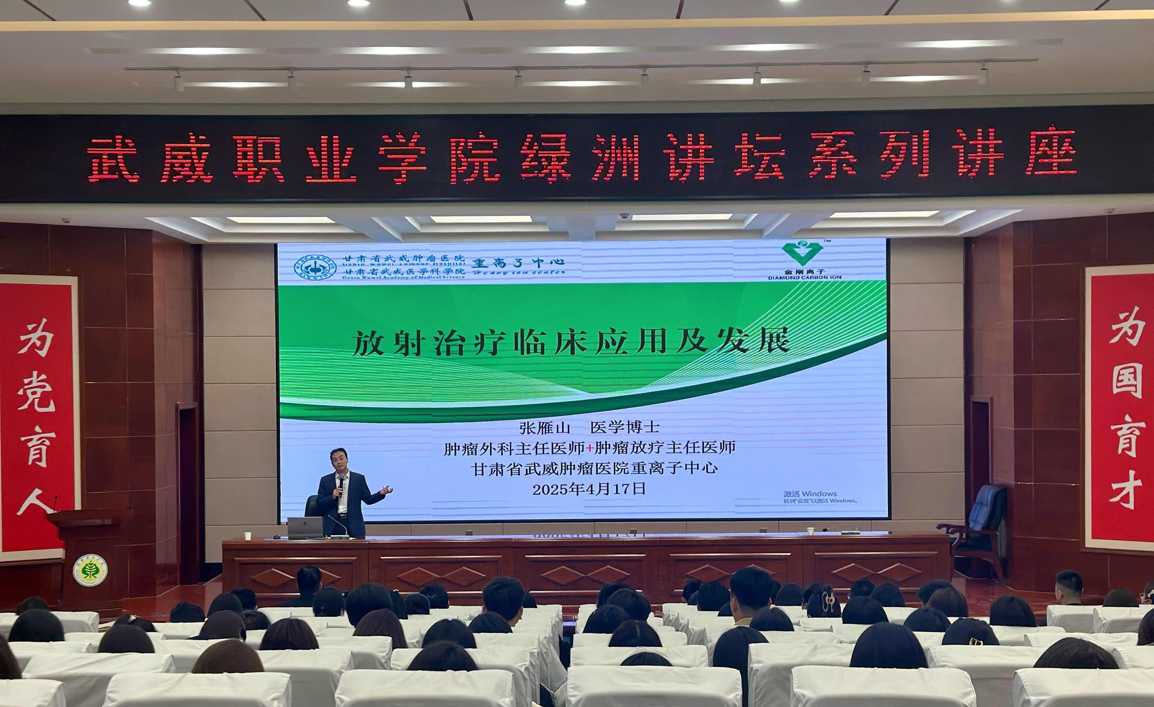4月17日,学校特邀甘肃省武威肿瘤医院副院长、重离子中心主任张雁山博士,在菁英厅作了“放射治疗临床应用及发展”专题讲座。学校党委副书记翟存祥主持讲座,医学技术学院、药学院、护理学院教师,2024级放射治疗技术专业学生共210余人聆听了讲座。