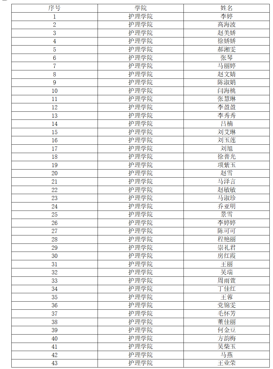 护理学院关于2025年奖补专项助学金推荐人选的公示