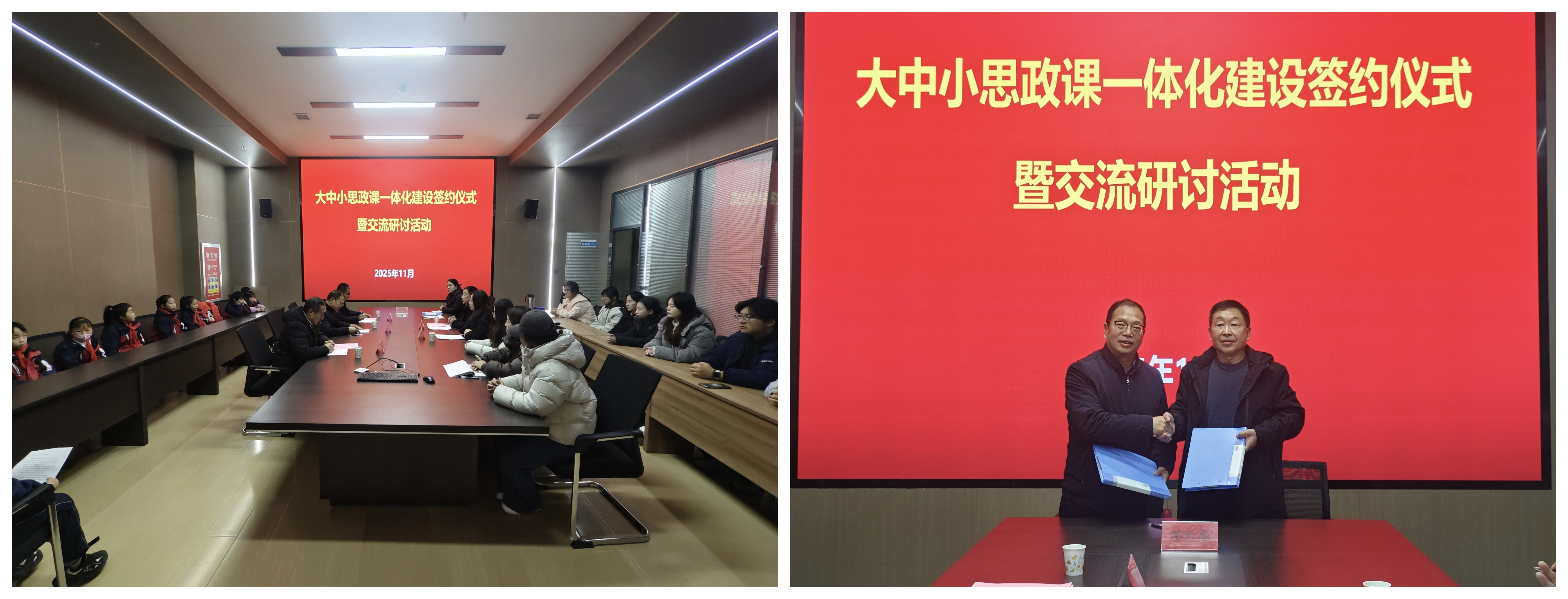 签约仪式上,刘心和徐主年分别致辞,双方共同签署了《大中小学思政课一体化共建协议书》,并围绕共建目标、合作内容与实施机制进行了深入交流。此次合作签约为院校双方搭建了资源共享、优势互补、协同育人的平台,希望双方在师资队伍共建、实践资源共享、课程创新突破等方面多维度协同推进,不断探索一体化建设的长效机制,打破各学段在课程、资源、师资等方面的壁垒,实现有机衔接,促进优质教学经验互鉴、特色教学模式推广,共同提升立德树人效果。