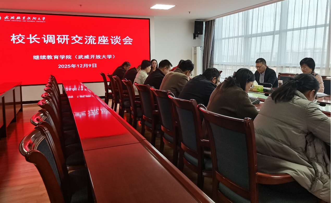 12月9日,校长李海军深入继续教育学院(武威开放大学)开展调研指导工作。此次调研聚焦学院招生管理、教学运行、社会培训、社区教育等核心议题,旨在通过深度交流凝聚共识,为提升办学质量与服务水平注入新动能。党委委员、副校长何毅,继续教育学院领导班子及全体教师参与调研。