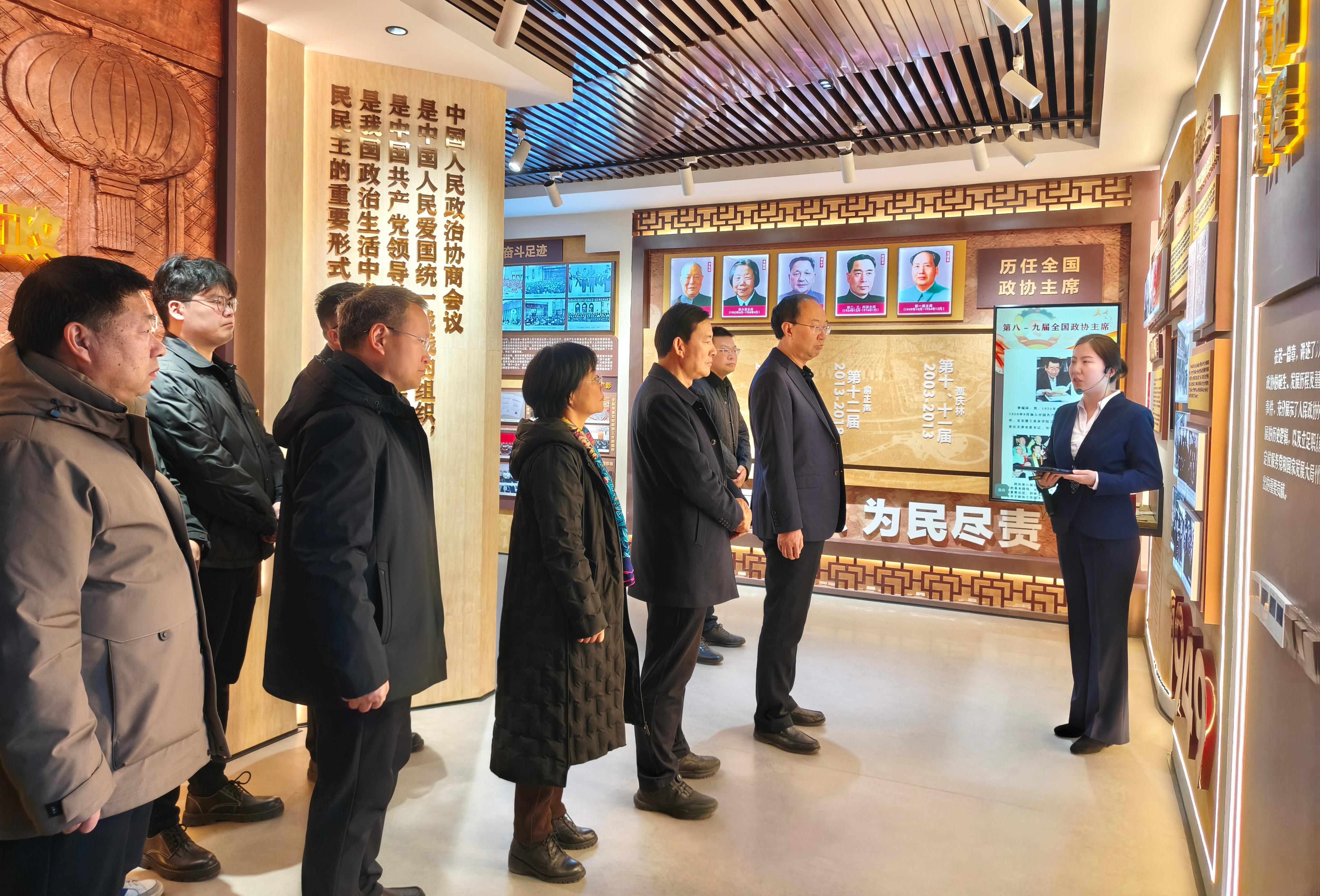 在讲解员的引导下,大家依次参观了政协发展成就展示厅、文史资料室等主要展区,通过观看珍贵的历史文献、详实的档案资料和生动的图片影像,系统回顾了人民政协在中国共产党领导下走过的光辉历程和积累的宝贵经验,深入了解了武威市政协在推进政治协商、民主监督、参政议政等方面的具体实践与积极成效。参观过程中,校领导还与市政协相关负责同志就文史馆的规划建设、展陈设计等工作进行了深入交流。