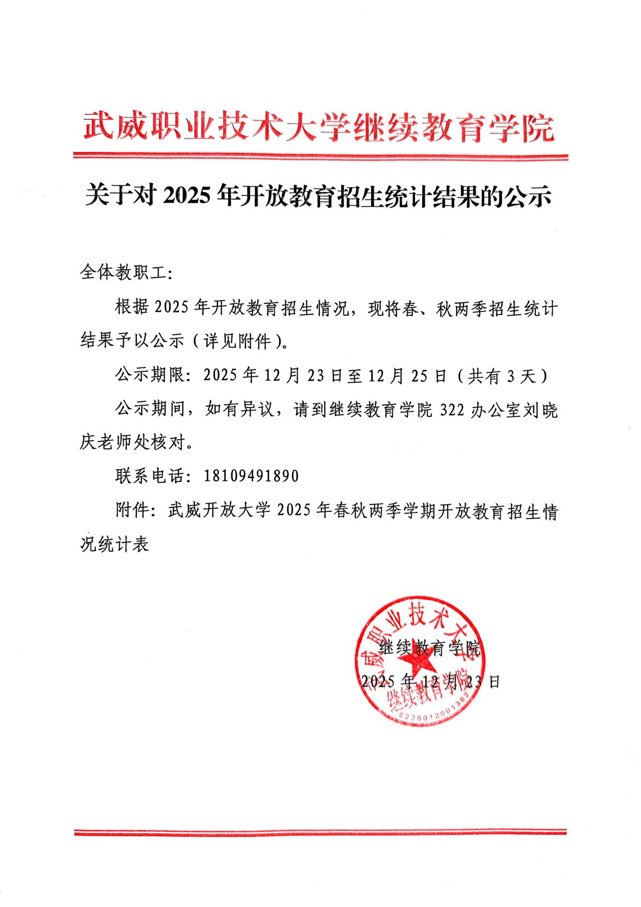 关于对2025年开放教育招生统计结果的公示
