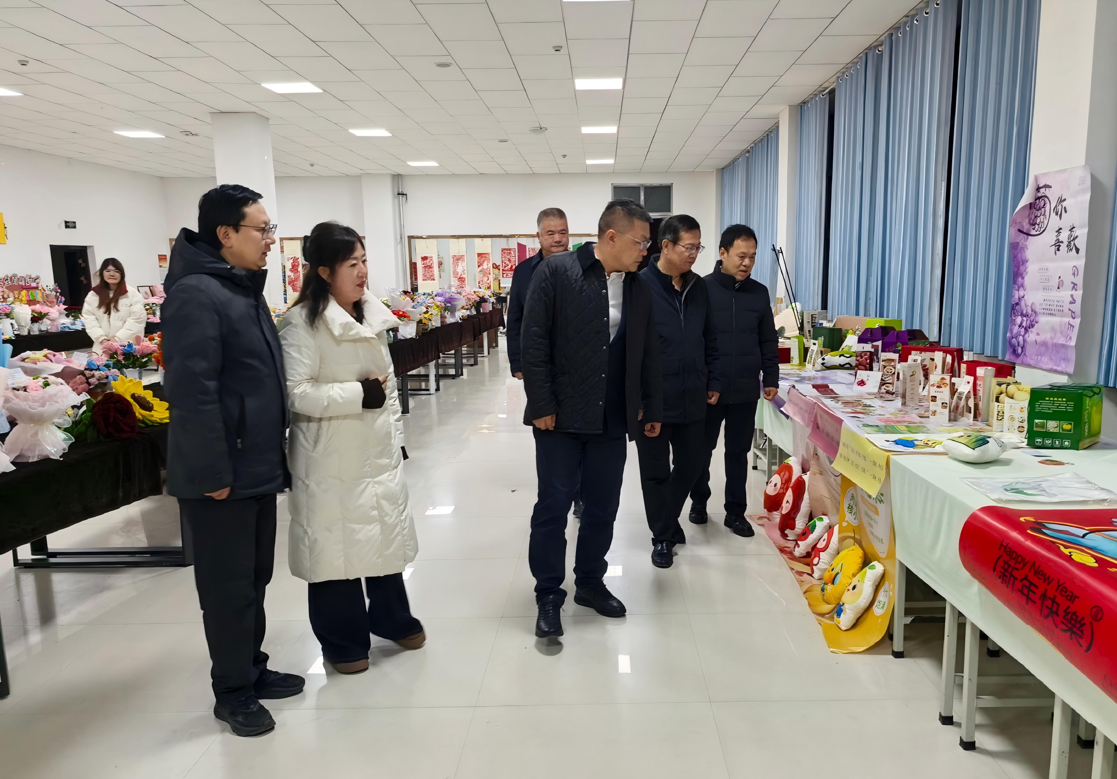 2023级学前教育、动漫制作技术、数字媒体艺术专业毕业作品展在大学生活动中心同期开展,校长李海军一行观看了展览。展览展出各专业共10个毕业班精心创作的产品包装设计、手工制作、幼儿园环境创设、彩笔画、国画、书法、剪纸等作品近900余件。