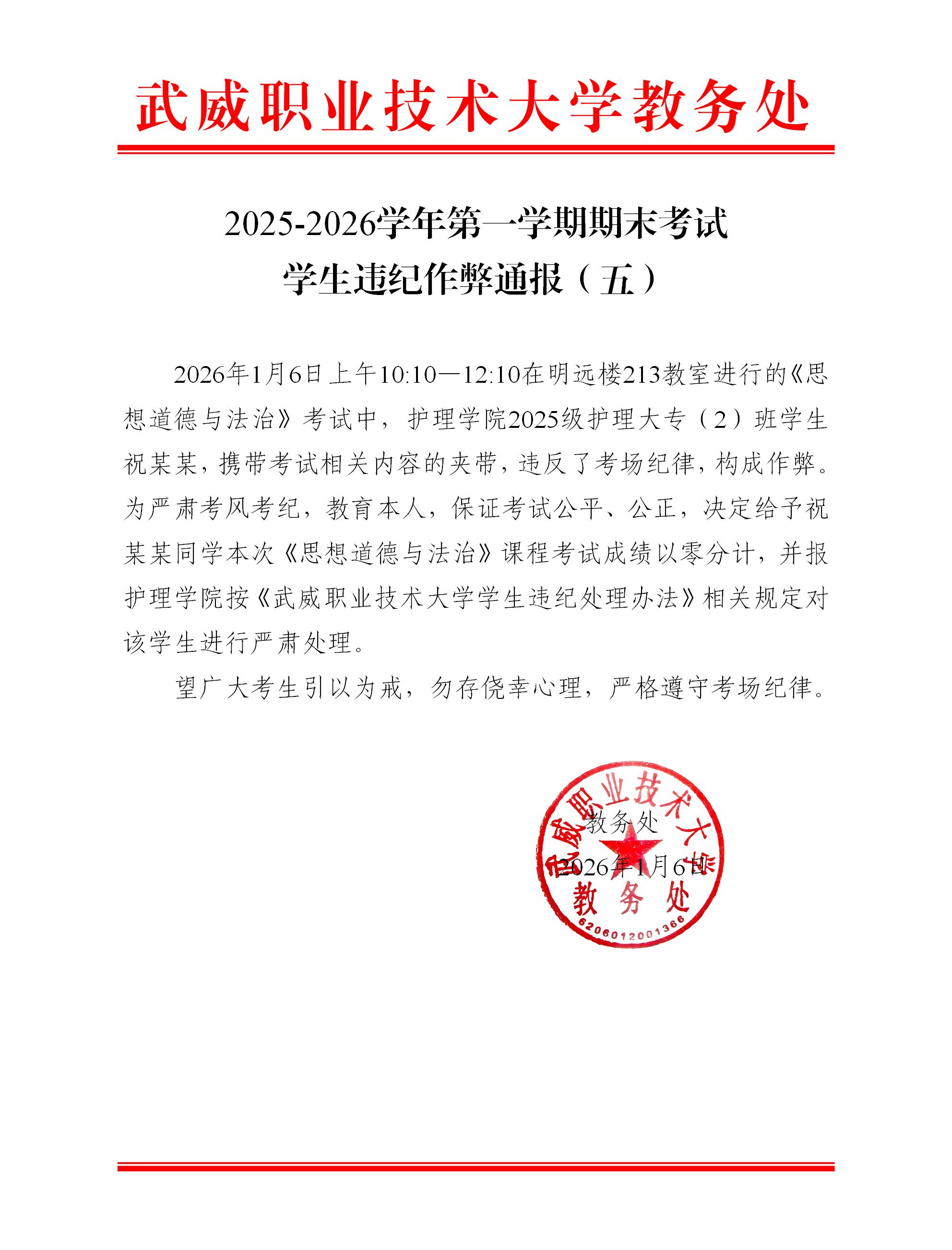 2025-2026学年第一学期期末考试学生违纪作弊通报(五)