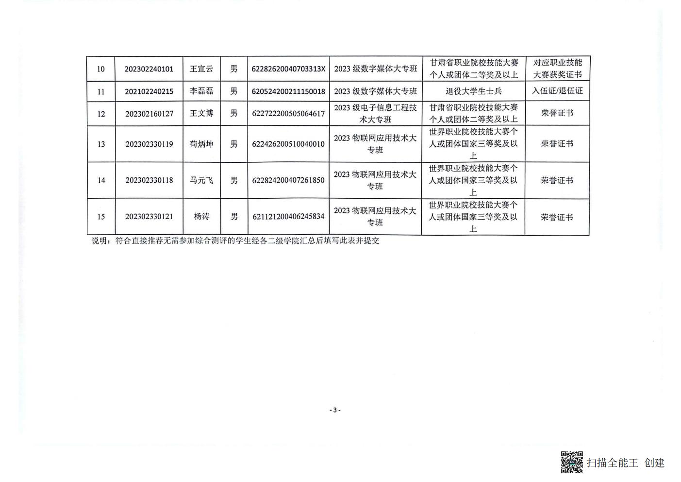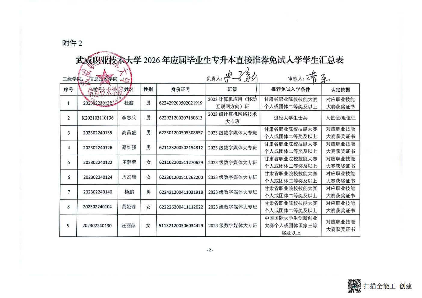 关于信息技术学院2026年普通专升本工作预推免学生名单公示