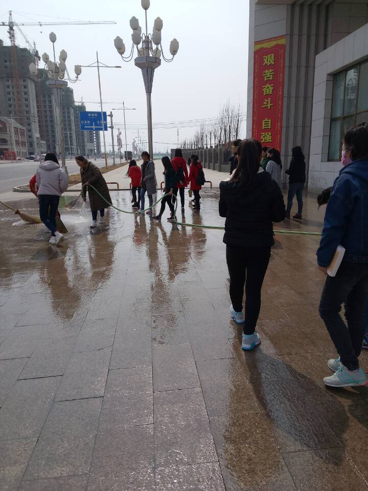 接学院学生工作处关于校园环境卫生集中清理冲洗的通知,3月15日下午,人文艺术教育系积极响应,各班班主任跟班组织学生,具体指导学生正确清理冲洗了区域卫生.彻底清理了所属环境卫生区域内的草坪和树沟里的垃圾.残枝败叶,对所属环境卫生区域内的路面、地面、楼周围、墙裙、一楼窗台、树木、垃圾箱、果皮箱、宣传栏等设施设备进行了全面彻底冲洗。