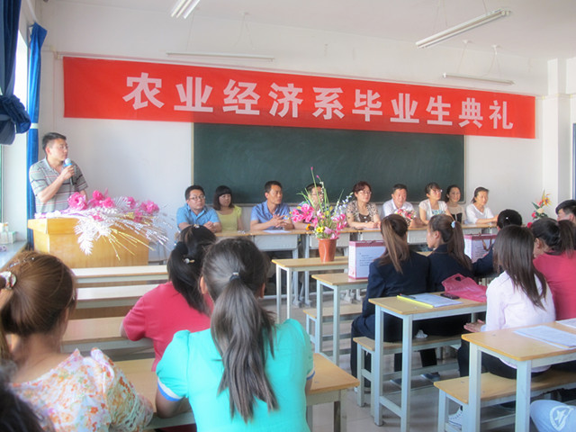 农业经济系第二届团学会主席,12级设施农业技术大专1班学生吴光宗代表全体毕业生,发表了毕业感言,表达了对系部的眷恋、老师的感激和对未来的信心。农业经济系第三届团学会主席、13级绿色食品生产与检测大专班学生赵三桃代表全体在校生向优秀毕业生学习,积极学习,珍惜美好青春,努力成为一名对社会有贡献的人。系领导向设施农业技术专业81名学子颁发了毕业证书。毕业生代表向系部送上了鲜花、纪念品。毕业典礼在齐唱《毕业歌》中结束。
