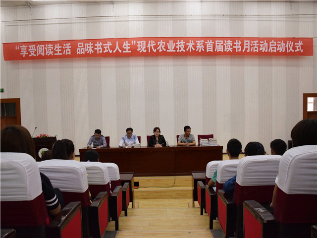 为营造“书香系部”,现代农业技术系举办首届读书月活动,并于5月19日在尚德楼正徳厅举行了“享受阅读生活,品味书式人生”读书月活动启动仪式。我系全体专兼职教师,设施农业技术、绿色食品生产与检测、种子生产与经营3个专业近300名学生参加了本次活动。