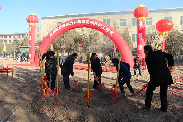 开工典礼由副院长王宏同志主持。学院副院长赵明同志介绍了工程概况。该工程是经武威市发改委武发投资〔2012〕1044号文件核准的建设项目。由甘肃长源建筑设计咨询有限责任公司进行工程施工图设计,核工业武威工程勘察院进行地质勘探。按照政策规定,每套公租房国家补助49000元并对具备入住条件的教职工给予适当的租赁费补助。