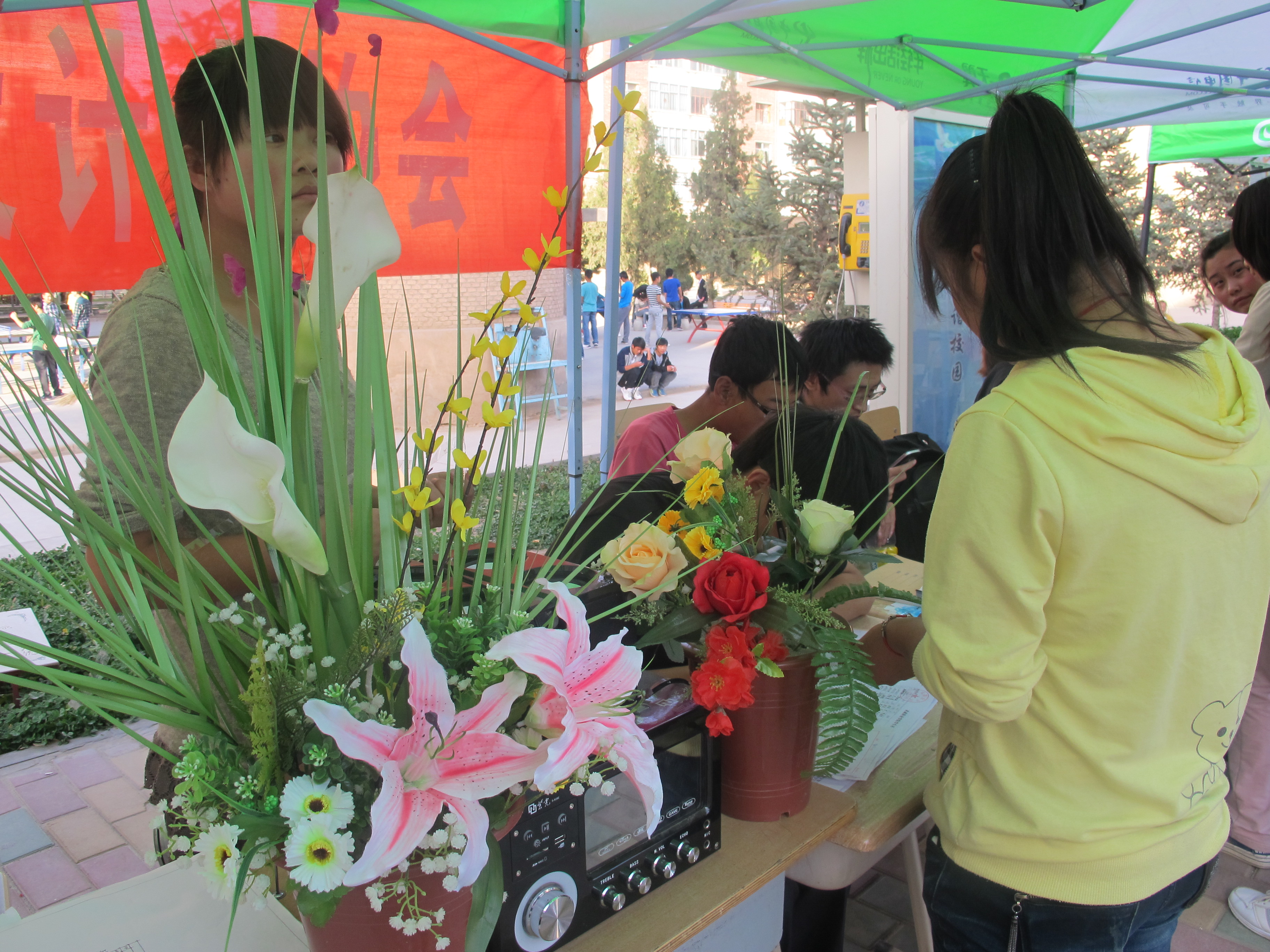 现代农业技术系花语插花社向新生展示插花艺术