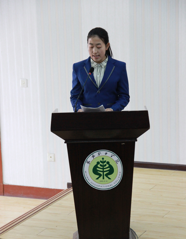 2013级王婷同学代表学生发出倡议,要胸怀大志,以崇高的理想信念提升前进的动力;要勤奋学习,以渊博的知识打好前进的根基;要呵护心灵,以更加健全的心智创造更好的成才之路。