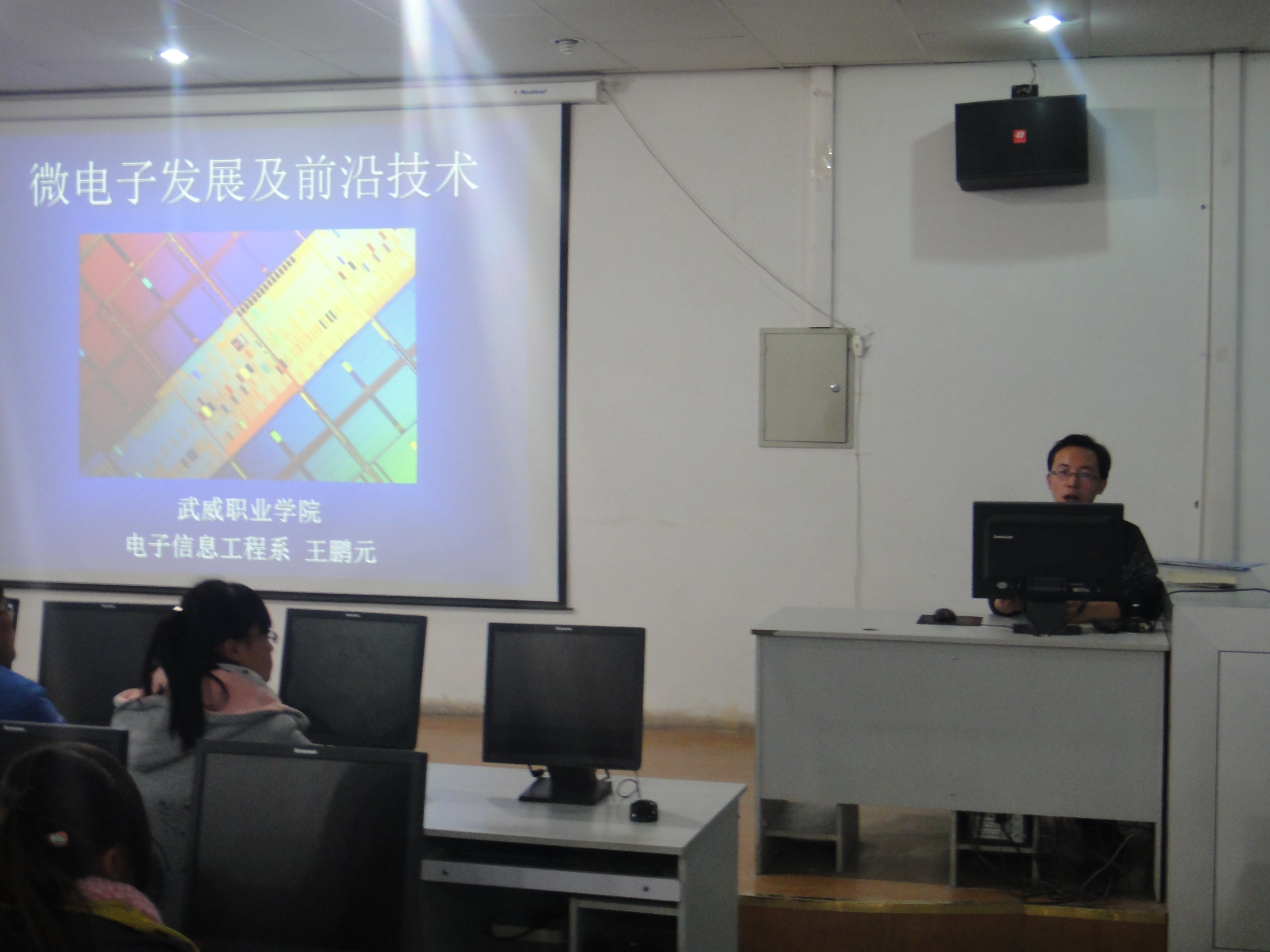 电子信息工程系2013年12月5日举办了“微电子发展及前沿技术”讲座,小牛顿电子协会会员、电子信息工程系12、13级电子类专业全体学生听取了此次讲座。电子信息工程系电子教研室主任、小牛顿电子协会指导老师王鹏元作为主讲人出席此次活动。