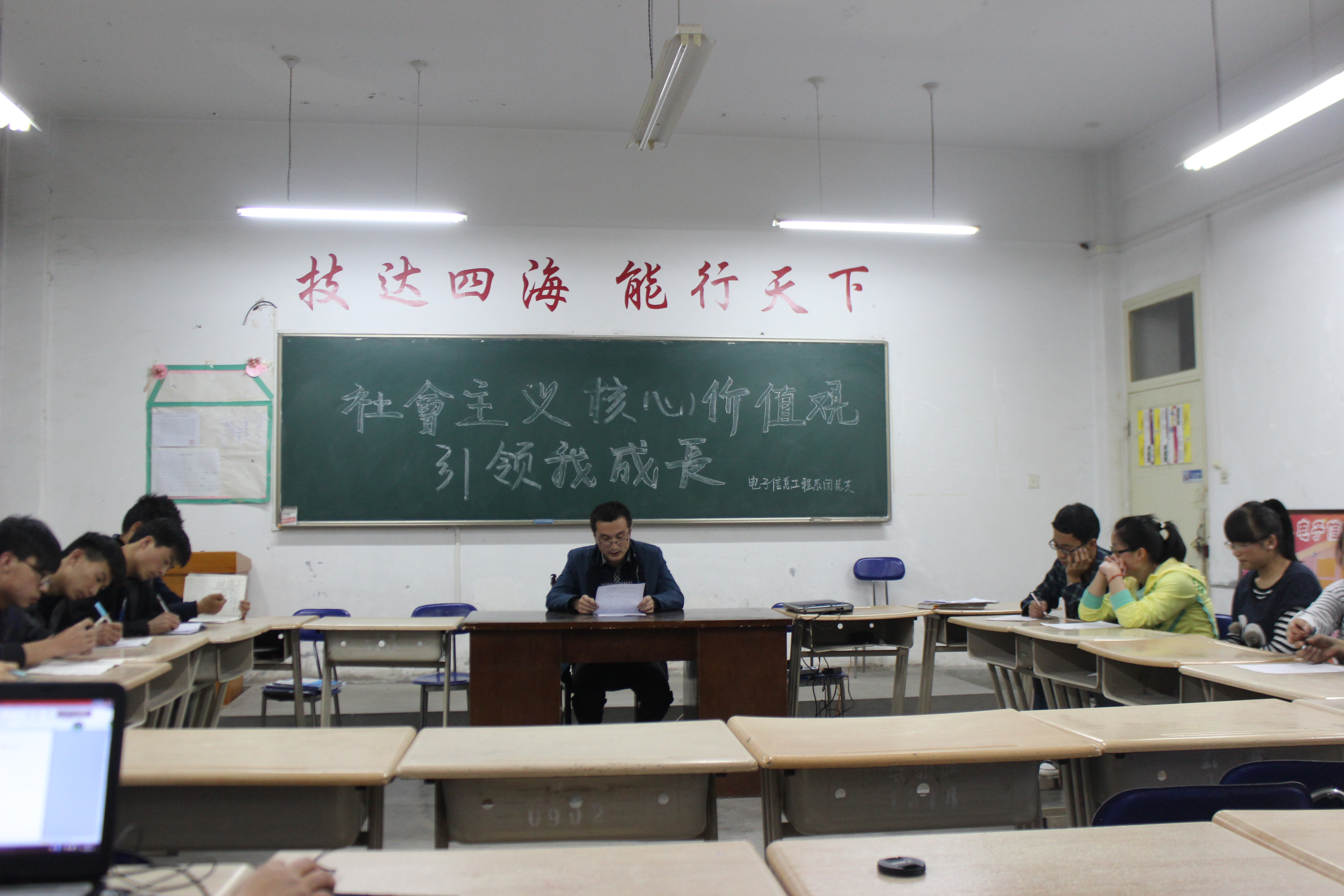 4月7日晚8时,电子信息工程系团总支召开“社会主义核心价值观引领我成长”活动动员大会。各班班长和团支部书记参加了会议,会议由系团总支书记唐宗舜老师主持。