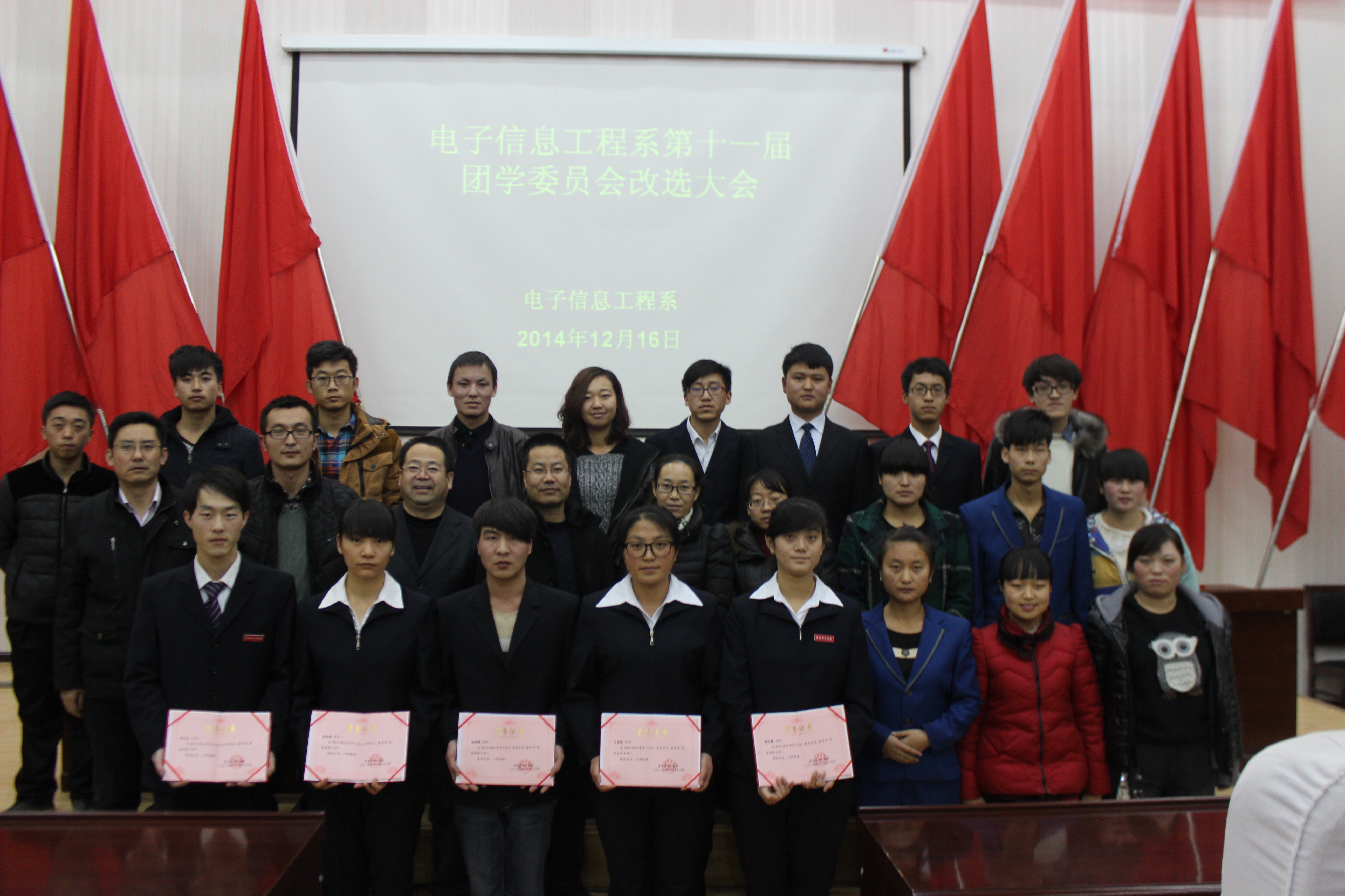 12月16日下午,电子信息工程系第十一届团学委员会改选大会在学院尚德厅隆重召开。电子信息工程系主任白玉珍、书记张伯成及我系全体班主任、兄弟系学生会代表、我系学生代表268人参加了本次大会。