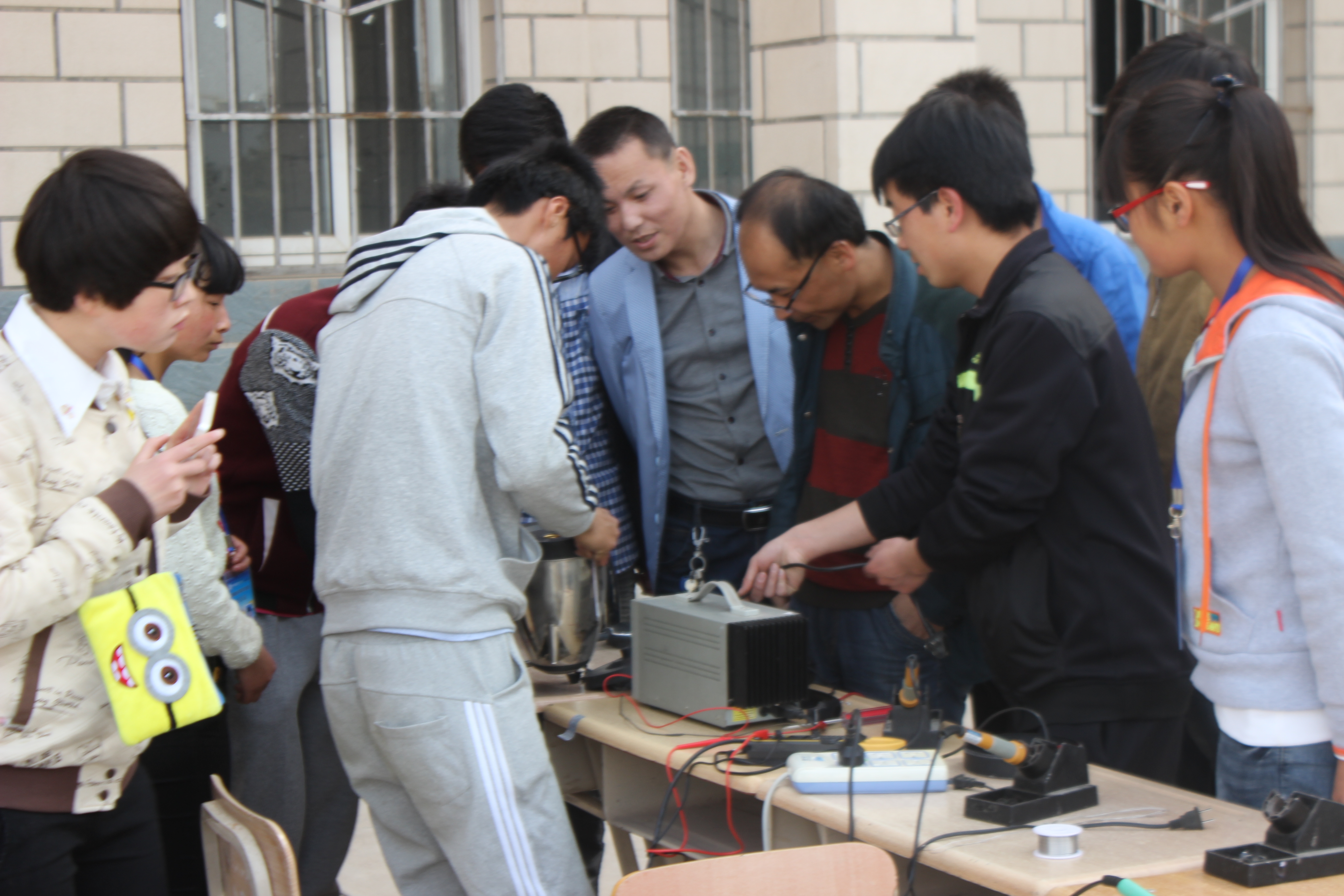 为引导广大团员青年积极参与青年志愿活动,发扬雷锋精神,弘扬民族精神。4月15日至17日电子信息工程系小牛顿电子协会、青年志愿者协会在学院尚德楼北侧广场举办了“义务维修”活动。小牛顿电子协会结合协会自身特色,运用所学的专业技能,为全院师生免费维修各类小电器。主要维修的电器有:台灯、耳机、MP3、充电器、音响、电吹风等。活动一开始就吸引很多师生前来询问,活动现场气氛融洽,维修员们都忙的不亦乐乎,他们在各自的战场上,挥洒着热情、倾注着努力。